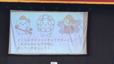 10月9日の児童集会では、児童会本部の児童が企画した「さくら小のキャラクター」が決定し、全校に向けて発表がありました。キャラクターは、児童から応募されたデザインの中から選ばれたものです。