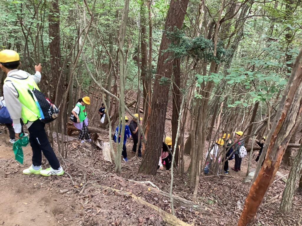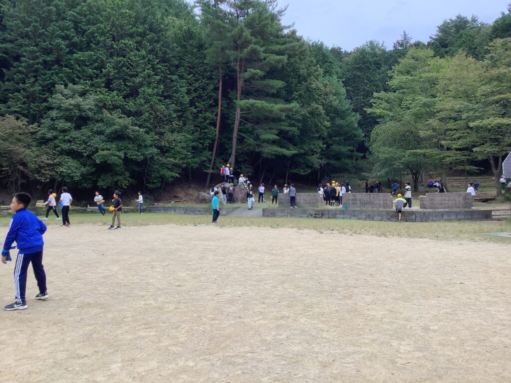 午前中のクイズラリーでは、山の中を散策しながら、20ヶ所にあるクイズを解きゴールを目指しました。道に迷いそうになったり、滑って転けそうになったりしながらも班で協力しながら進み、最後までやり切ることができました。ゴールをしたチームからジュースでほっこり。みんなが協力して行動してくれたので、工程がスムーズに進み自由時間もできました。自由時間は、学校を超えて楽しそうに遊んでいました。