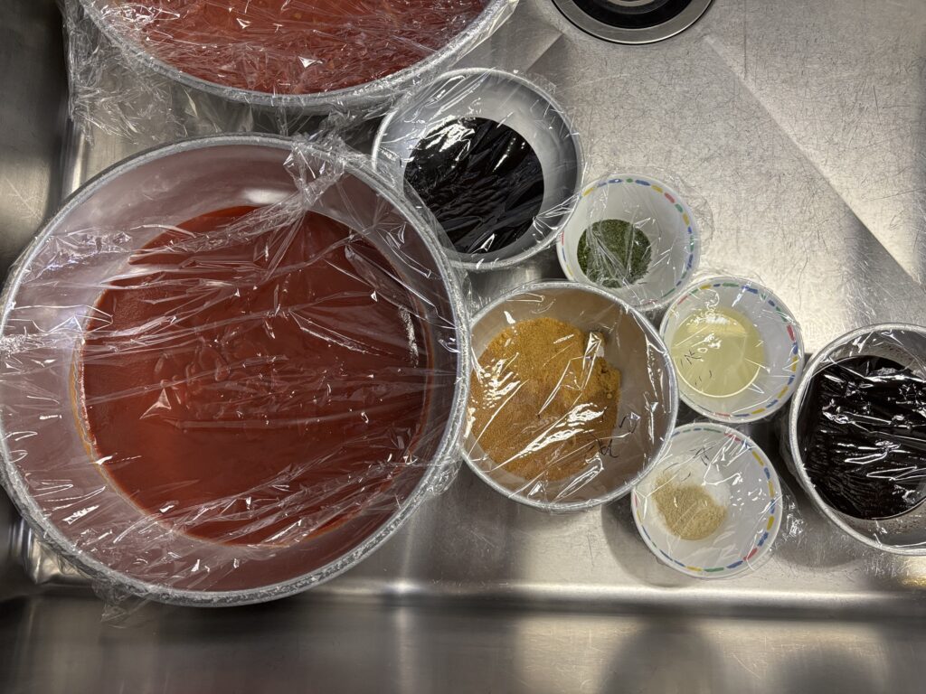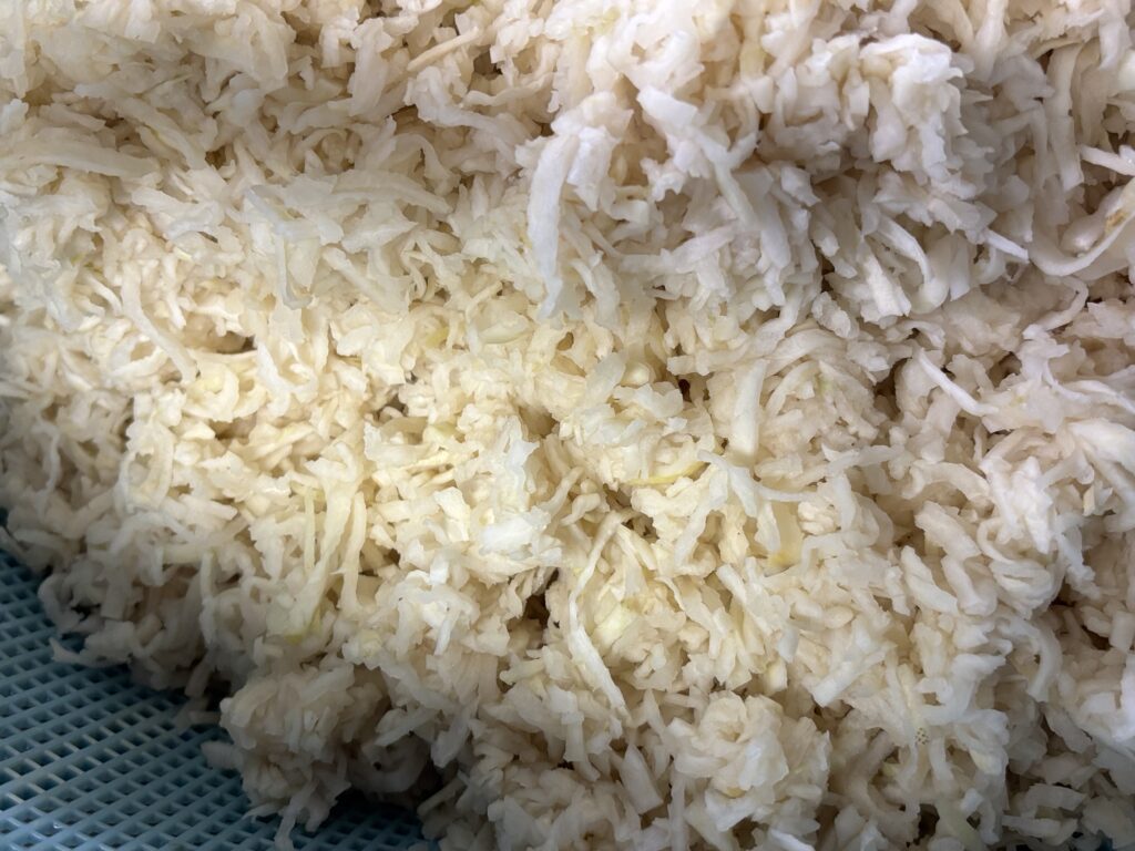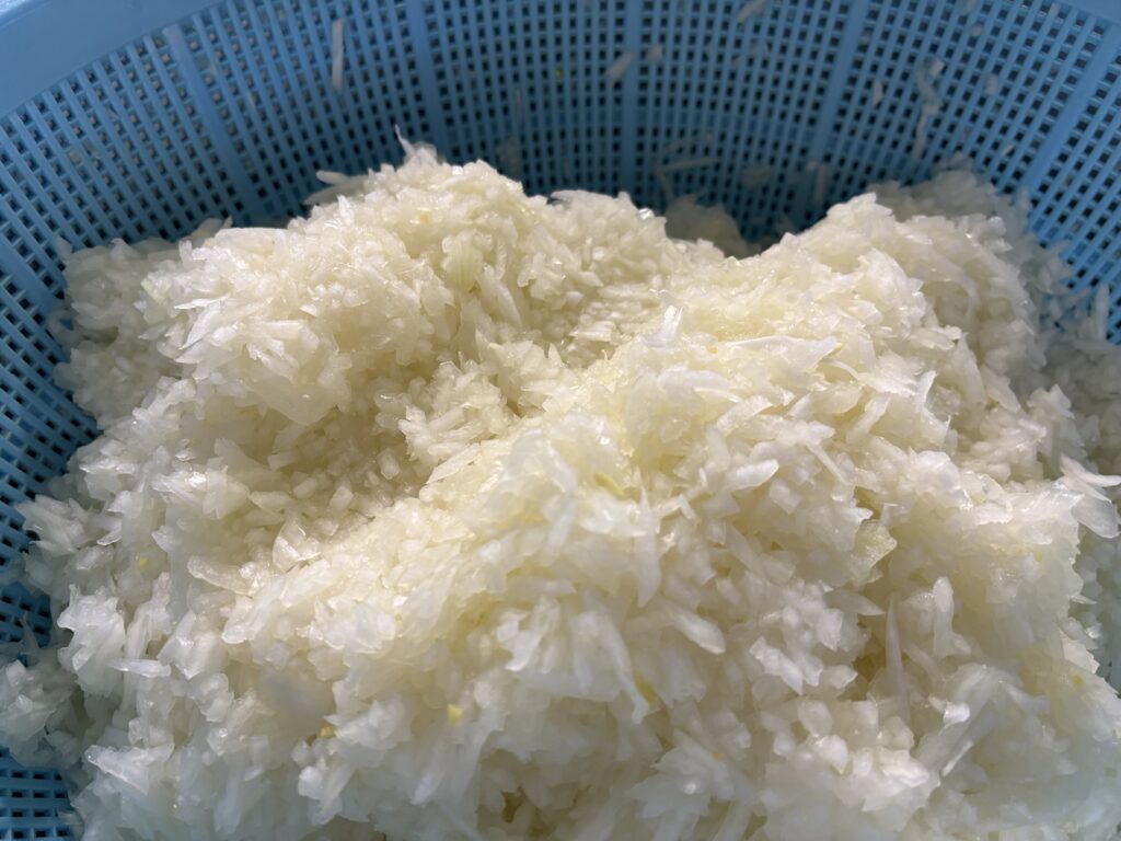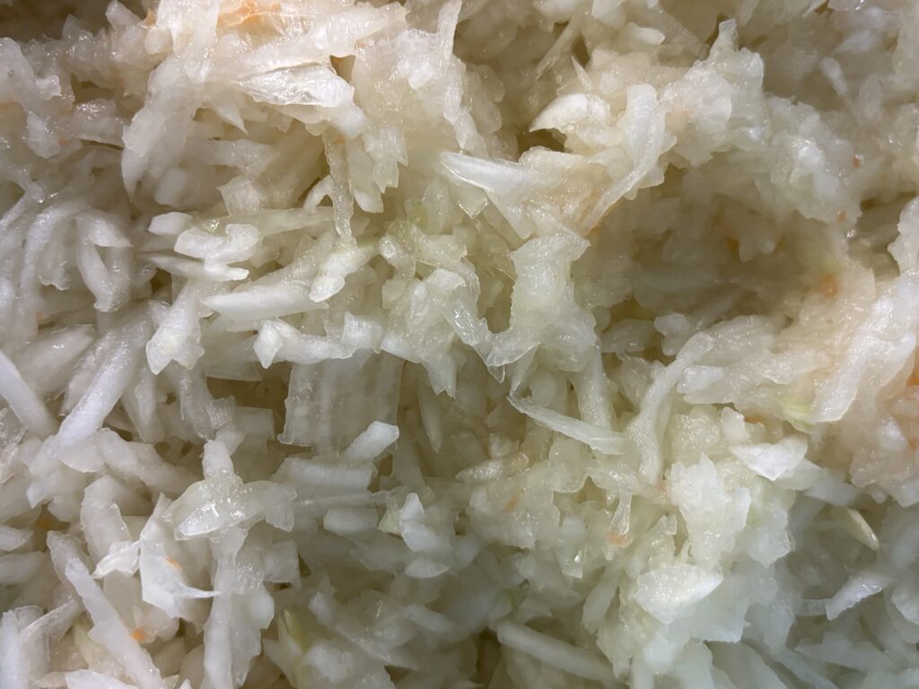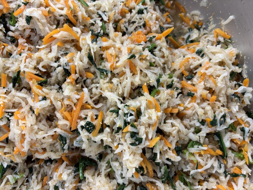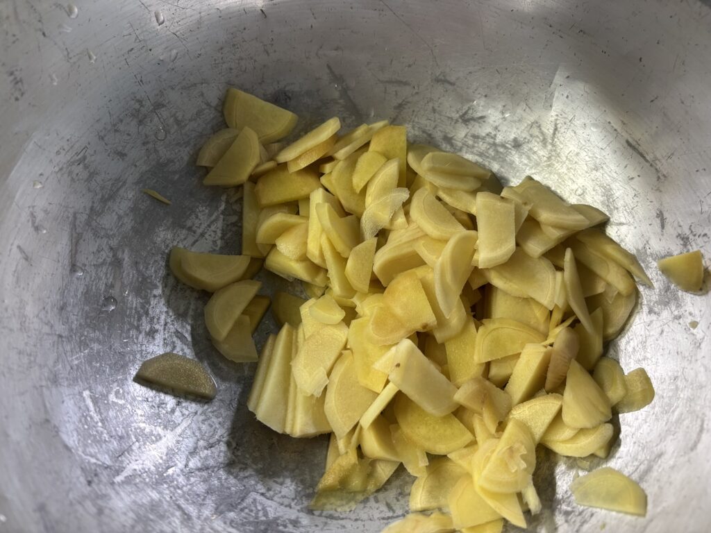 「ぽかぽか汁」の「ぽかぽか」のもとは、しょうがと片栗粉です。しょうがには、体を温める成分が、片栗粉には汁の温かさを逃がさない役割があります。