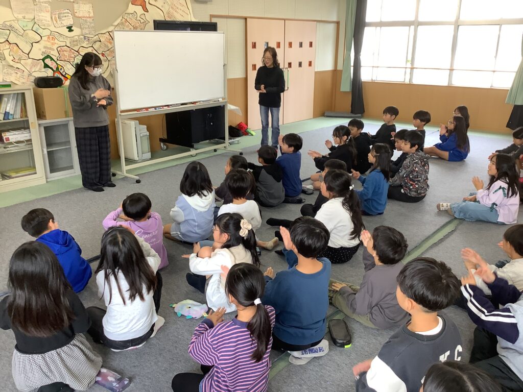 3年生の児童が手話や聴覚障害について学習しました。聴覚障害がある方にとって、日常生活で困ることや、コミュニケーションを取る際に気を付けてしてほしいことなどについて、具体的に説明していただきました。また、手話での挨拶や自己紹介の仕方も教えていただきました。最後には、教えていただいた講師の方に「ありがとうございました。」と感謝の気持ちを手話で伝える姿が見られました。