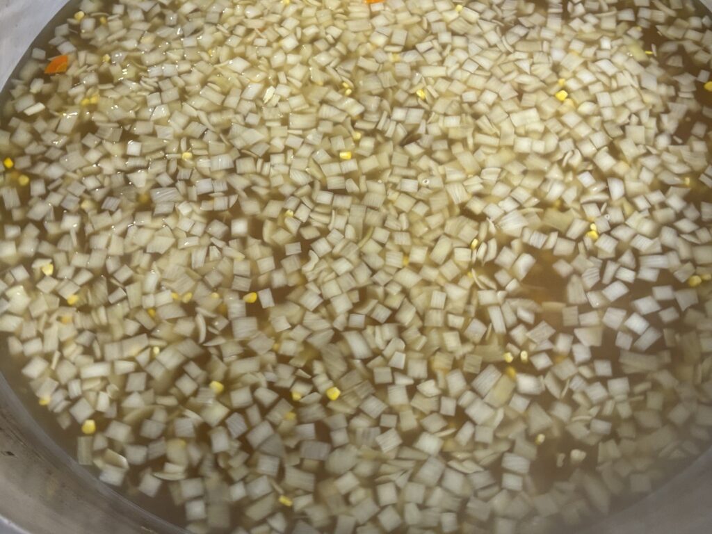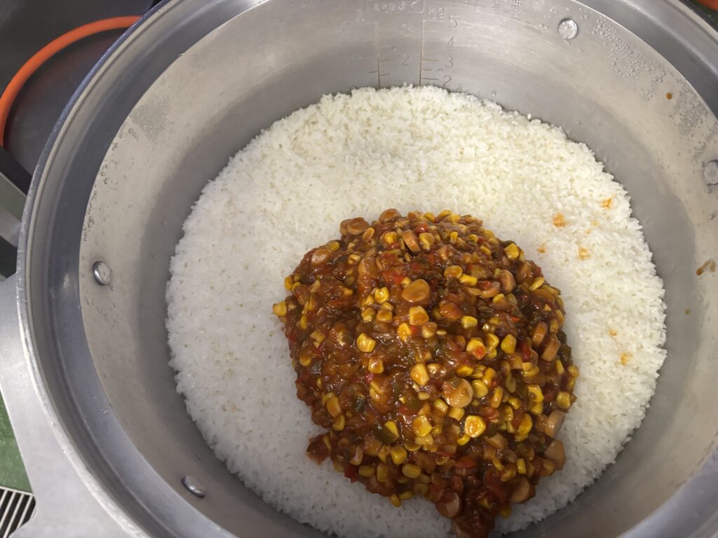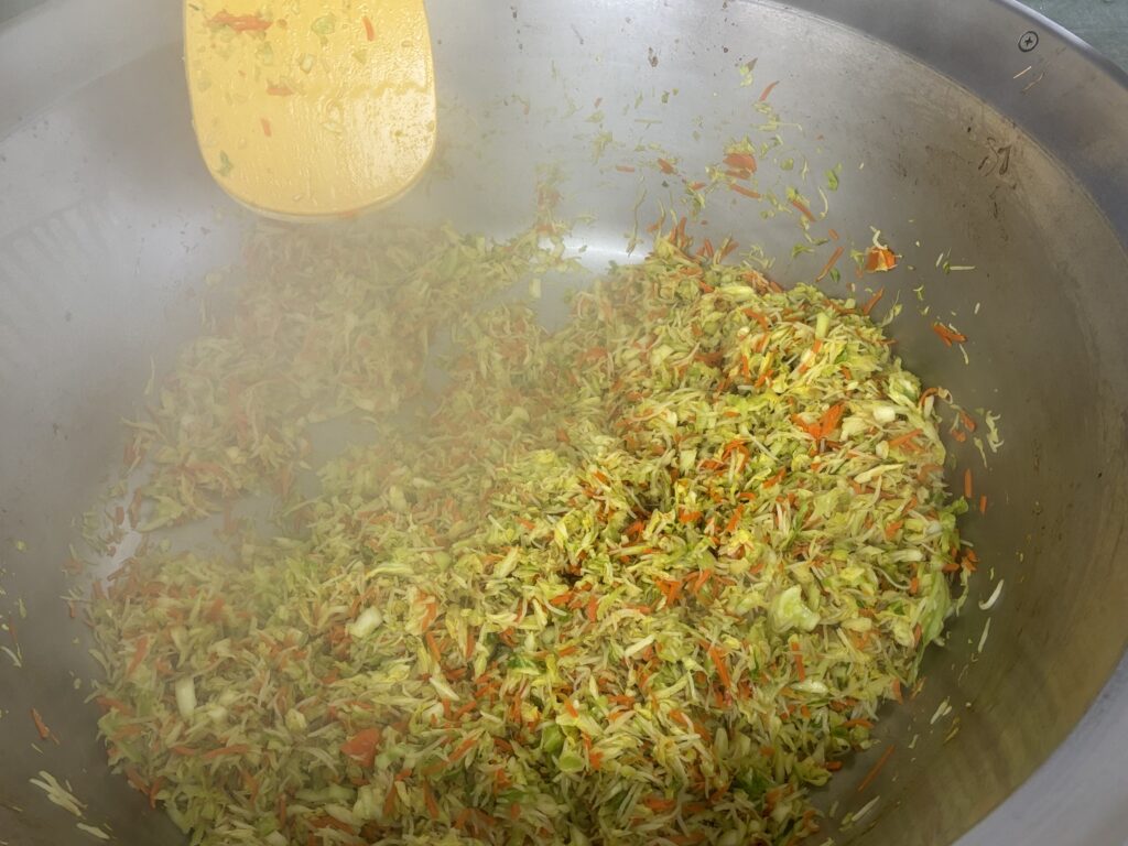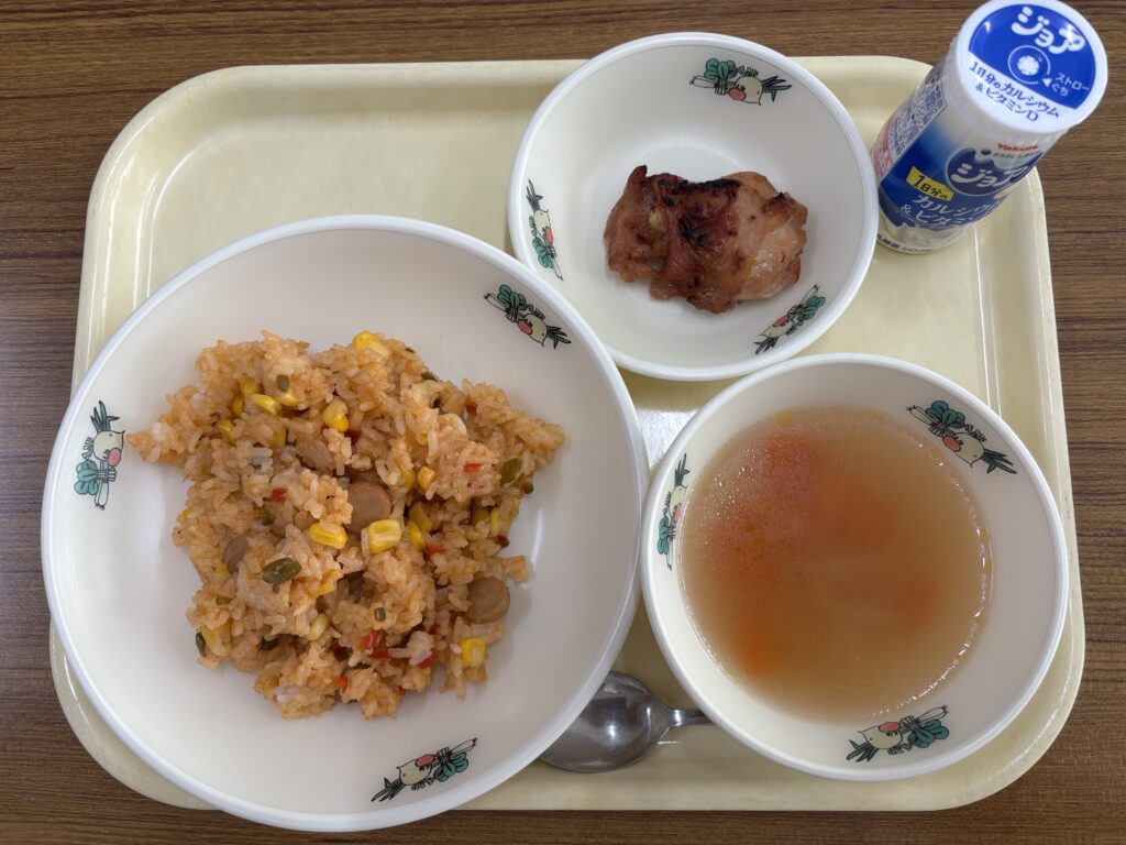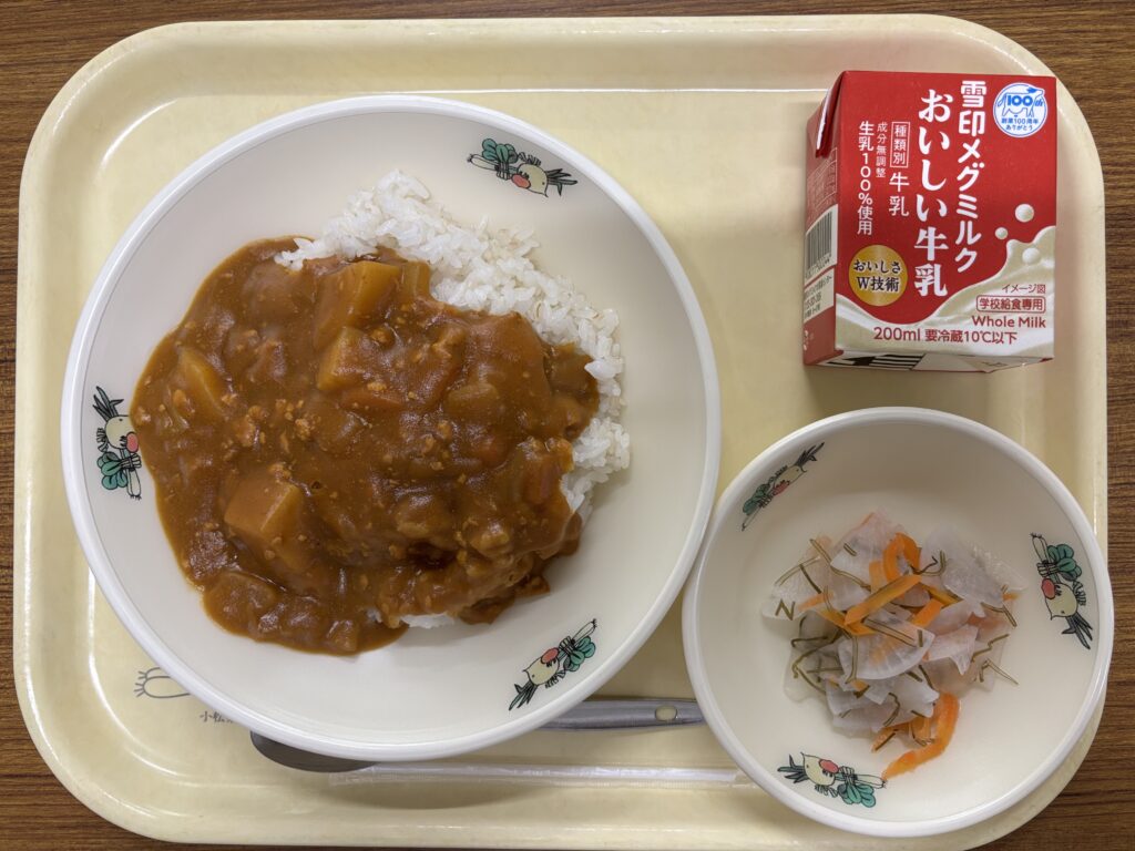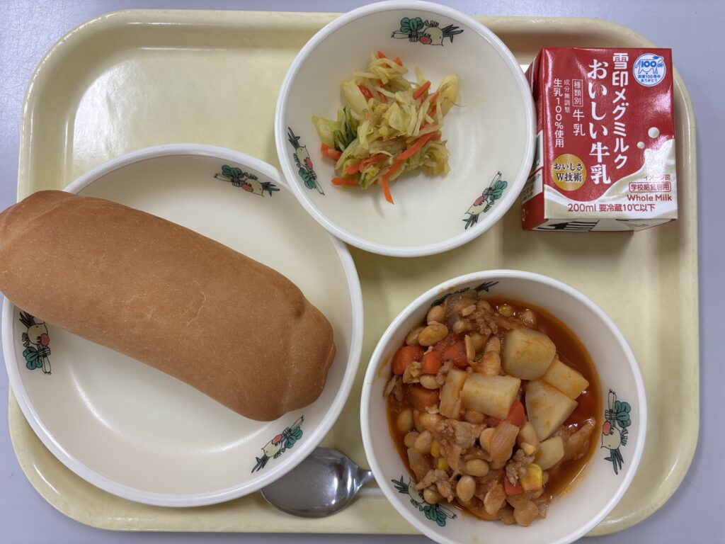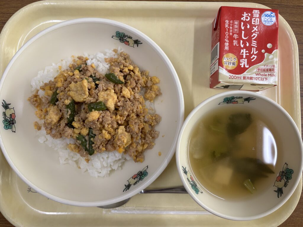 今日のみそ汁は、5年1組でグランプリに輝いたみそ汁です。小松菜、大根、さつま芋、豆腐、久御山みそを使用しています。煮干しでしっかりとだしをとって作りました。赤・黄・緑の食品をとることが出来る栄養満点のみそ汁です。