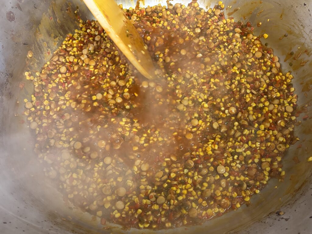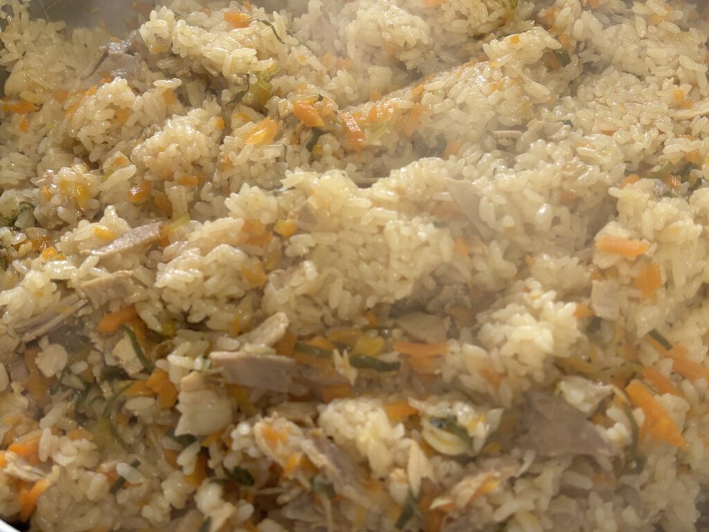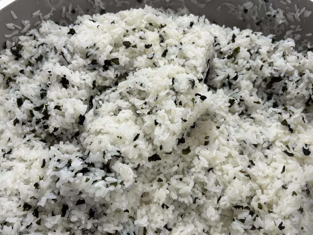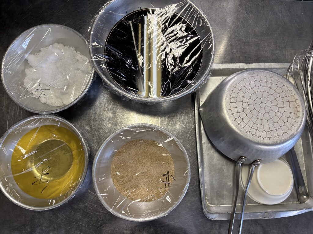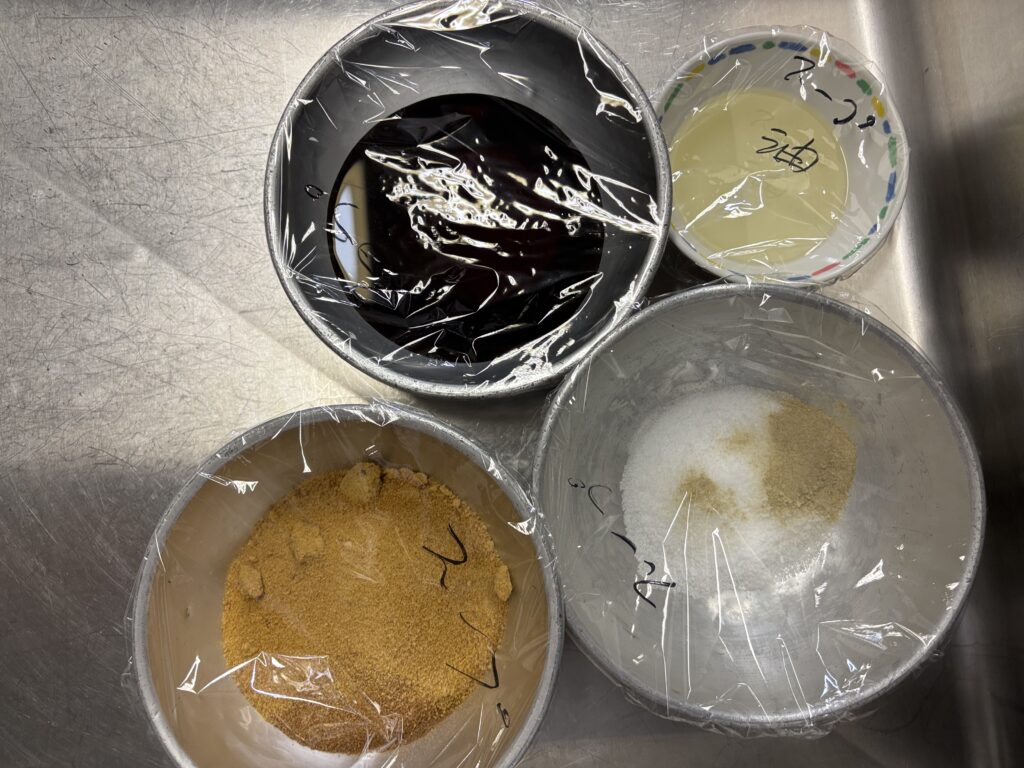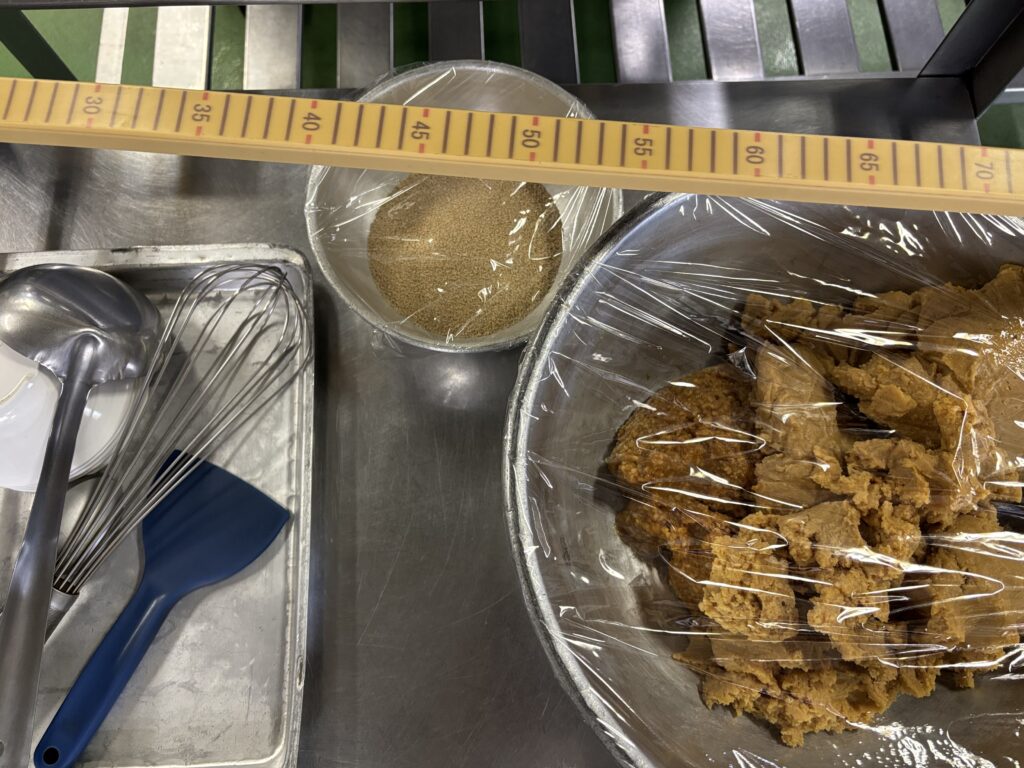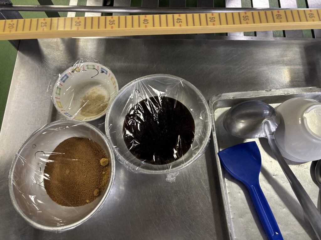 5年生の家庭科の授業で、みそ汁とご飯を調理しました。「みそ汁-1グランプリ」略して「M-1グランプリ」に輝いた具材は、かまぼこ、さつまいも、しめじ、小松菜です。秋の味覚と彩りがきれいなみそ汁でした。