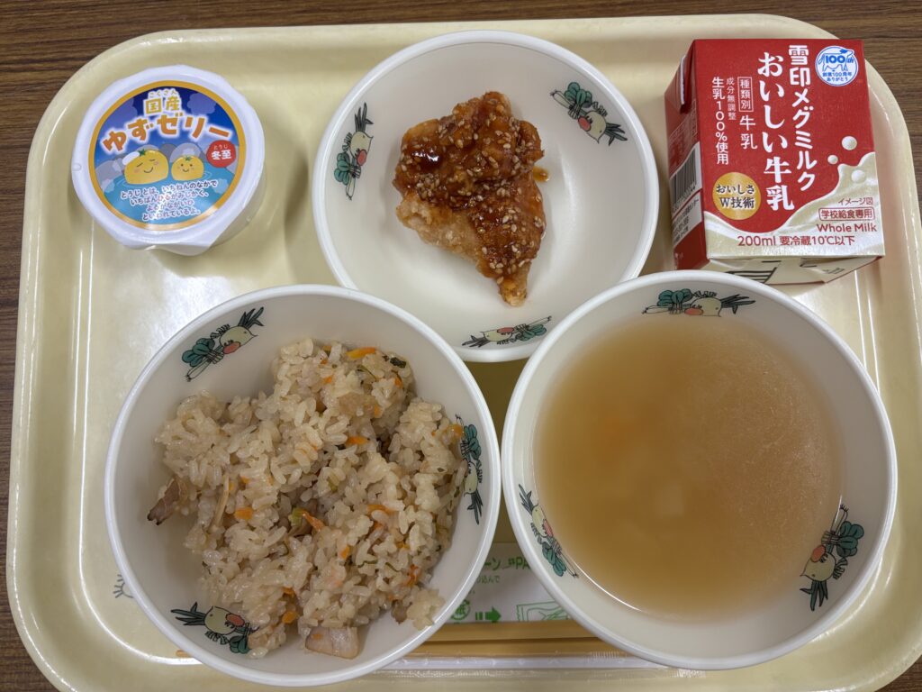 今日は、調理員さんのリクエストです。冬至にゆずを食べることで、「ゆずの香りが災いを遠ざけ、融通を利かせる」という意味が込められています。