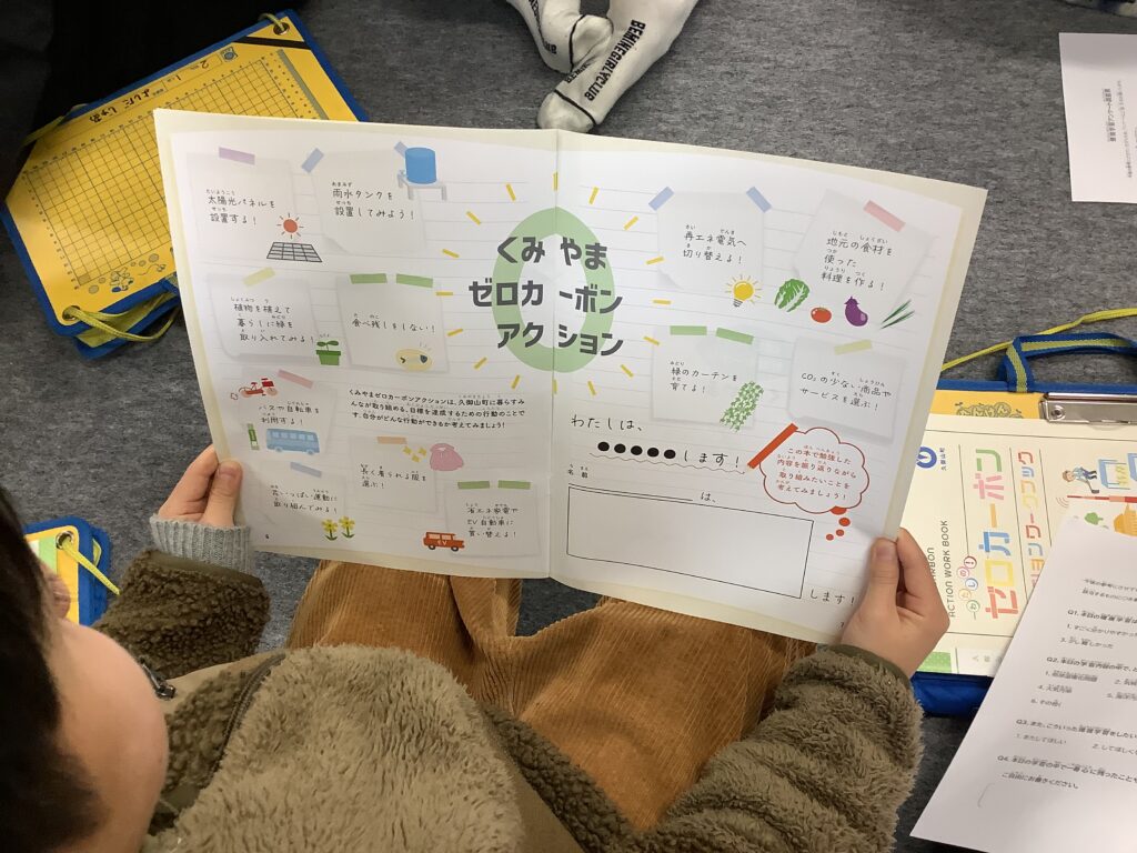 久御山町の産業・環境政策課の方に来ていただき、4年生の子どもたちが地球温暖化のしくみについて学びました。子どもたちは「家で野菜を家で育てる」「電気をこまめに消す」「食べ残しをしない」など二酸化炭素の排出を減らすために、大人だけでなく自分たちにも出来ることを考えていました。