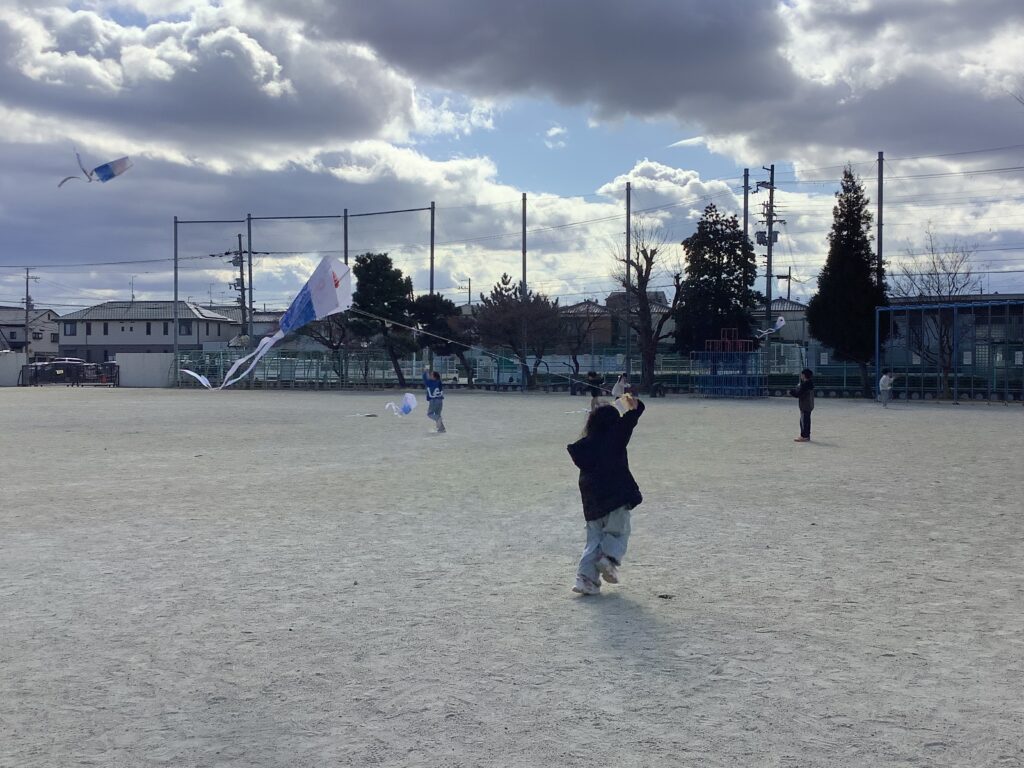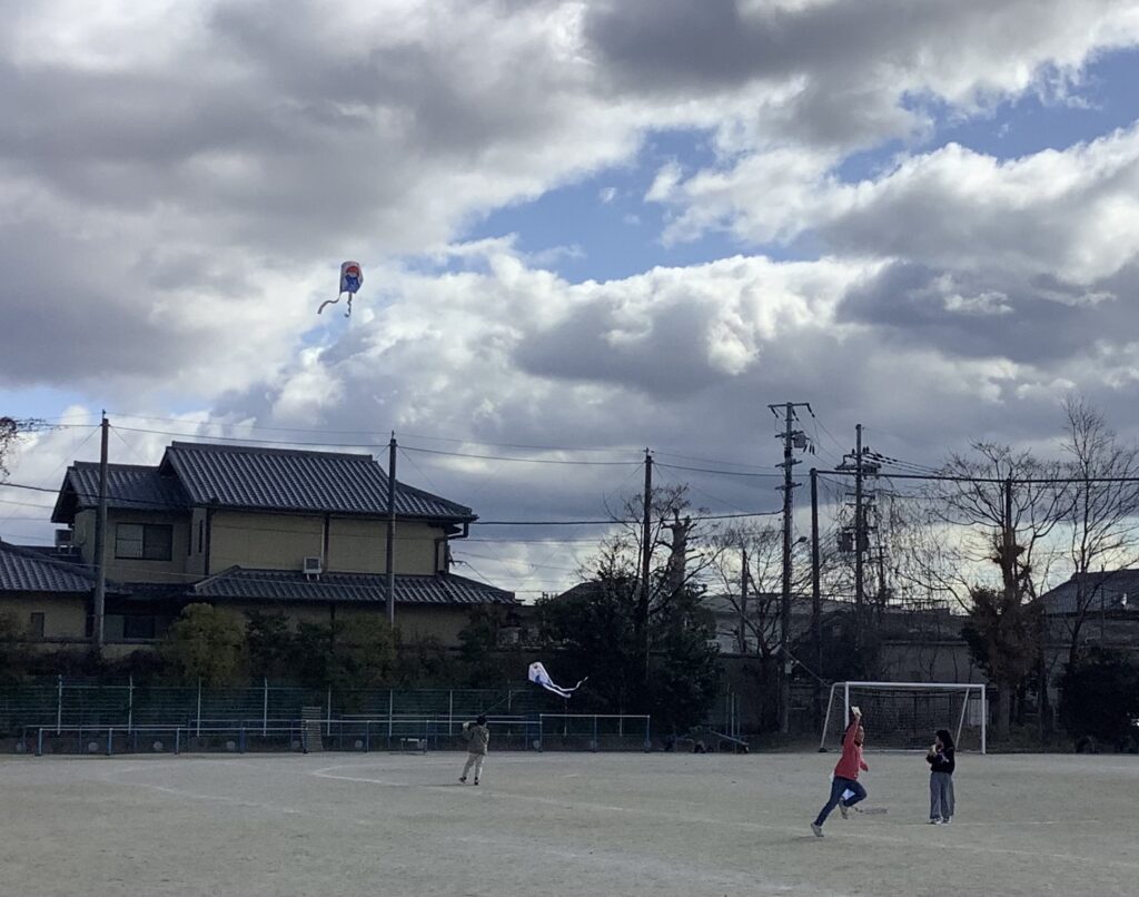 生活科の学習で、凧あげをしました。凧が空に揚がるよう、子どもたちは、一生懸命に走っていました。「揚がった!」と、嬉しそうに友だちと話しながら、笑顔いっぱいで活動に取り組んでいました。最近は凧揚げができるような場所も減り、なかなかする機会もありませんが、風と仲良くなりながら、たくさん体を動かし楽しい時間を過ごしました。