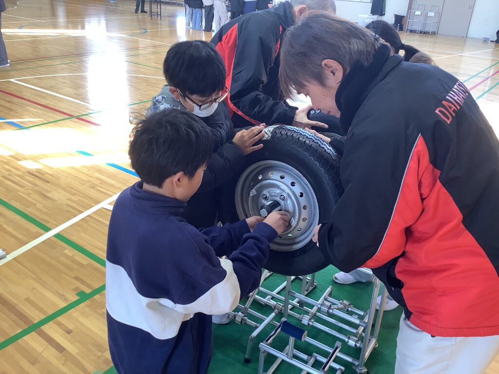 ダイハツの方に来ていただき、ものづくり体験教室を行っていただきました。自動車の生産工程ごとのブースがあり、それぞれ小グループで説明を聞き、クルマづくりを体験しました。エンブレムのプレス体験や、レゴを使っての自動車組み立て工程の体験等、様々な体験をさせてもらうことを通して、ものづくりは、さまざまな役割の人が責任を持って仕事をすることで成り立つことを実感し、みんなで協力して1つのものを作り上げる楽しさを学びました。