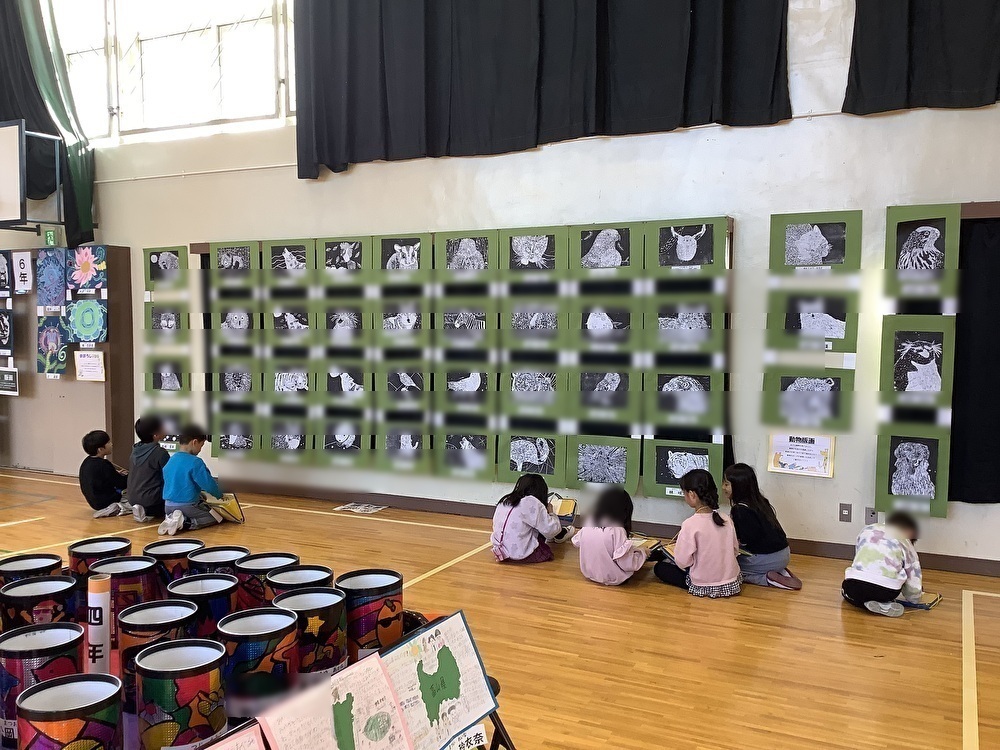 参観日に合わせて、校内作品展を行いました。子どもたちが制作した平面作品や立体作品、学習のまとめとして仕上げた新聞等が並び、体育館はギャラリーに変わりました。他学年の作品を見る鑑賞の時間には、様々な作品を見ながら良さを認め合う素敵な時間となりました。たくさんの保護者の皆様、地域の皆様にも足を運んでいただきありがとうございました。