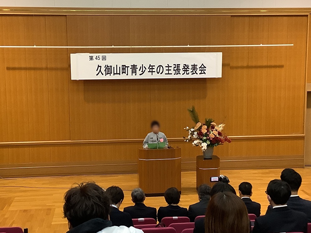 青少年健全育成協議会の主催で、行われた第45回「久御山町青少年の主張発表会」に学校の代表として6年生の児童2名が参加しました。この発表会は、子どもたちが日常生活の中で感じたこと、考えたことを発表する場です。緊張した様子はありましたが、堂々と自分の思いを伝えることができました。また、地域の方々の前で自分の考えを発表するという経験をし、子どもたちは大きく成長することができました。