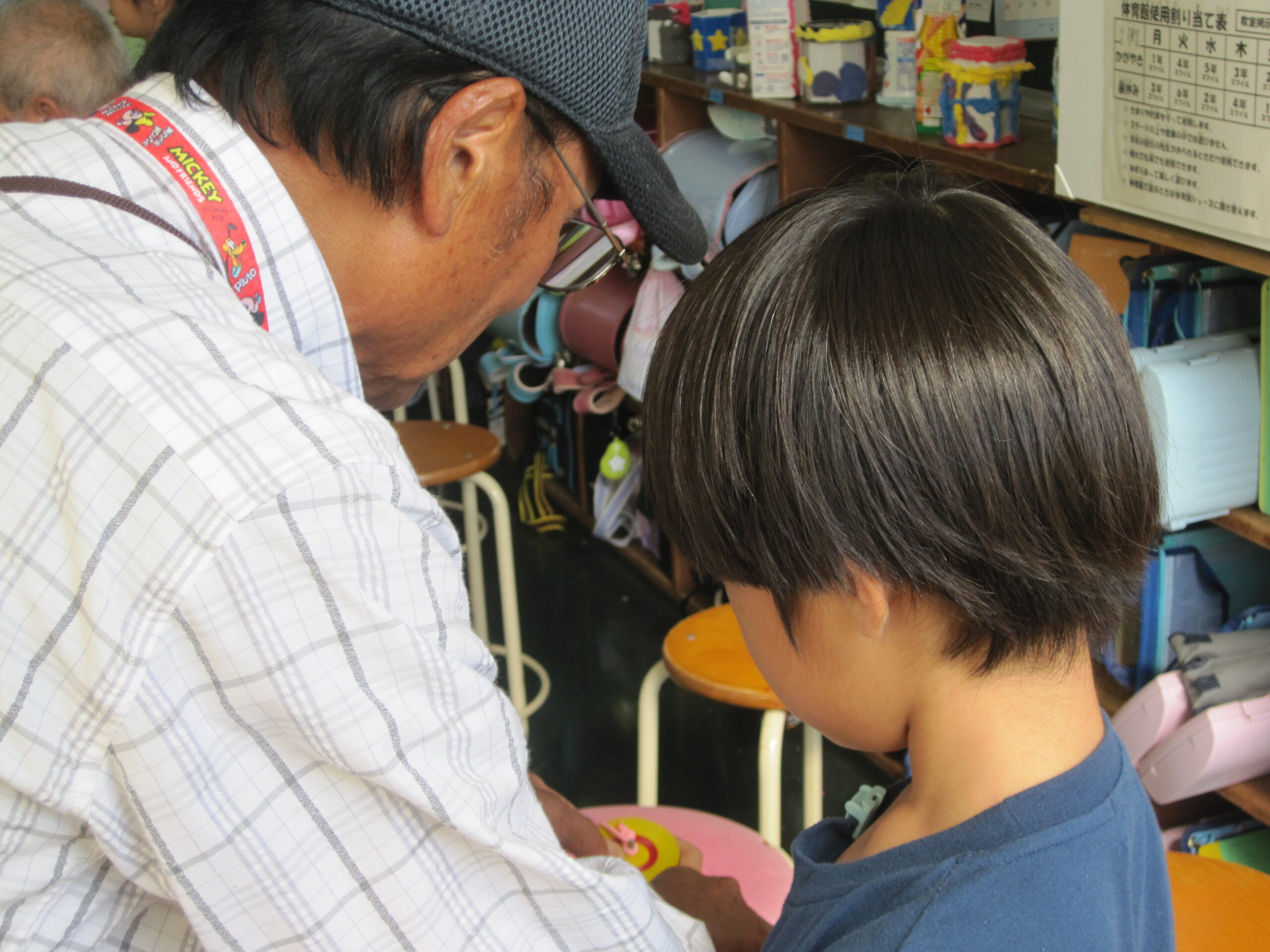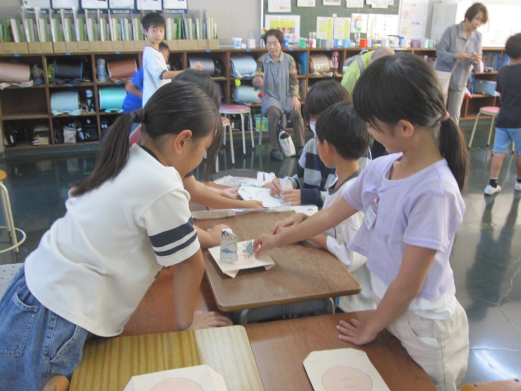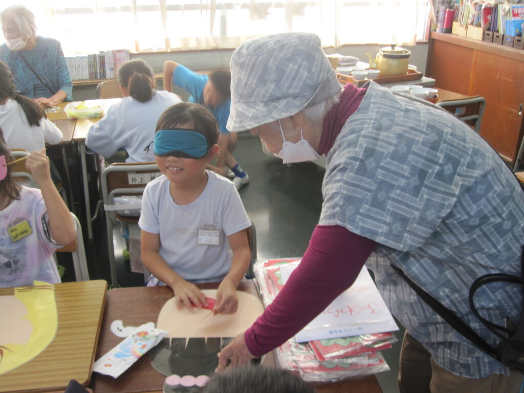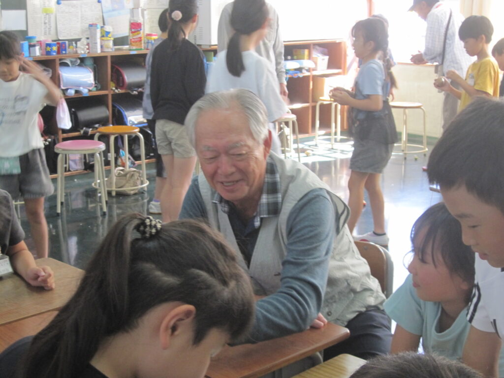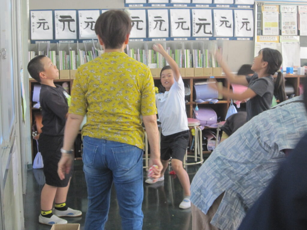3年生が、地域の老人会 四葉会、若葉会の皆さんと交流会をしました。地域探検の発表を聞いてもらった後は、昔遊びの交流をしました。けん玉、おはじき、お手玉、福笑い、こままわし…一緒にたくさん楽しみました。地域の大勢の皆様に来ていただき、うれしい1日でした。