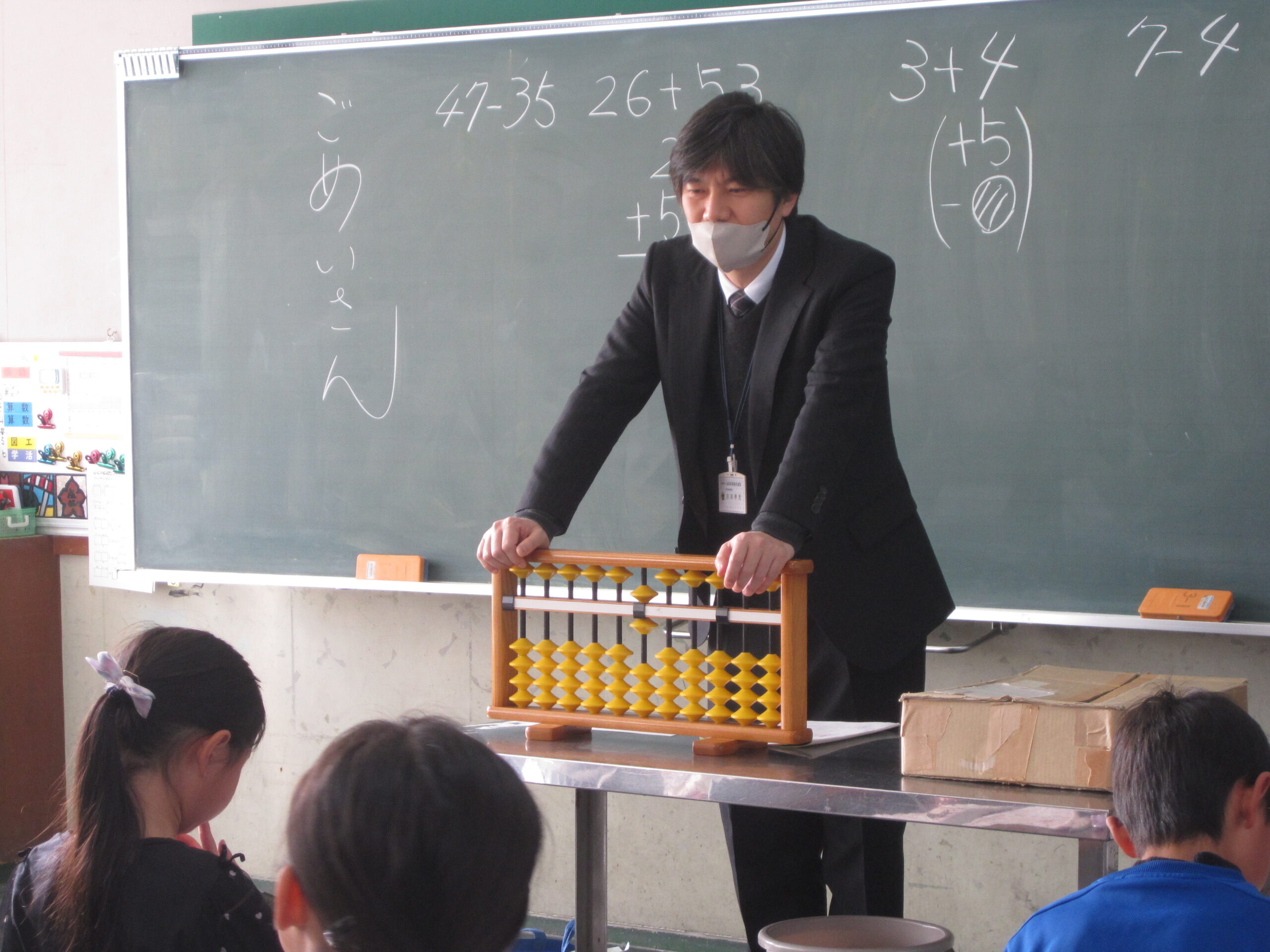 そろばん学習 成仁小日誌 Twitter Facebook はてブ Pocket LINE コピー 2025.12.19 全国珠算教育連盟京都支部より先生に来ていただき、3・4年生がそろばんを学習しました。短い時間で計算の仕方をつかみ、次々と計算をしていく皆に感心しました。「ごめいさん!」の声が響きました。