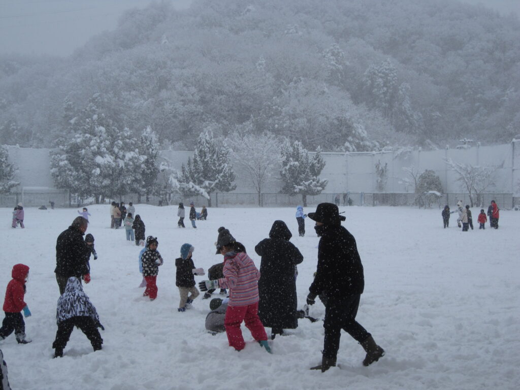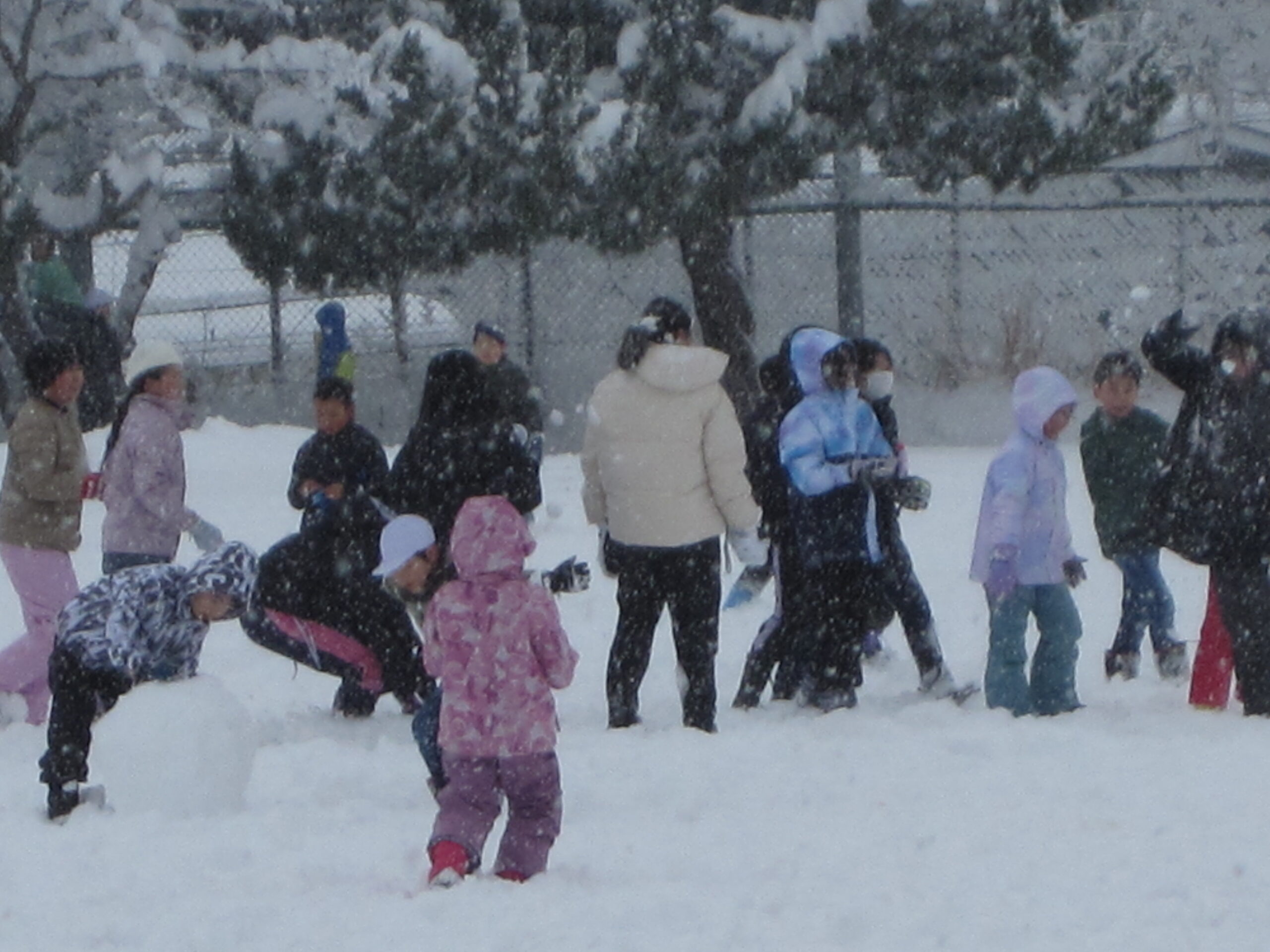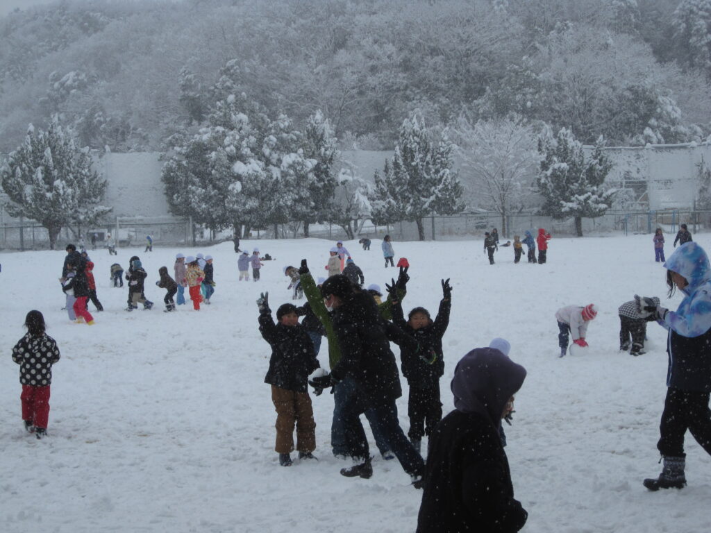 大雪の朝、先生たちが朝6時から校内や通学路の、セーフティの皆様もあちらこちらの通学路の雪かきをしてくださっていました。地域の皆様、保護者の皆様に、通学路の安全を確保していただいたおかげで、みんな元気に登校しました。降雪量が少なく、お天気も回復してきたころ…全校の子どもたちが運動場に飛び出し、ふわふわの雪でおもいっきり雪遊びを始めました。もちろん、先生たちも一緒です。雪だるまつくりに、雪合戦…一通り遊び終わって、体はほかほか、ほっぺは真っ赤な子どもたちと先生方。やっぱり成仁小はすてきです。