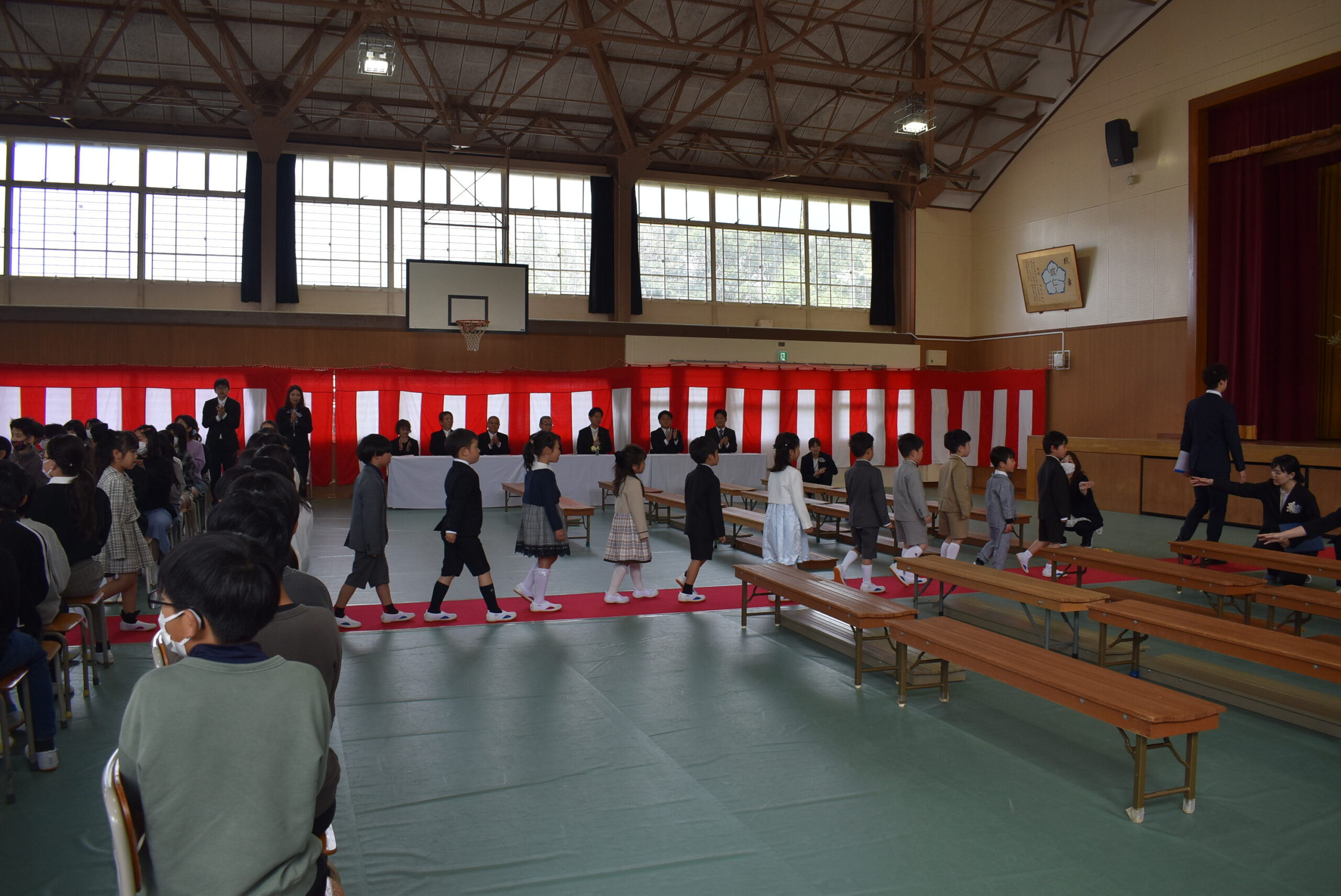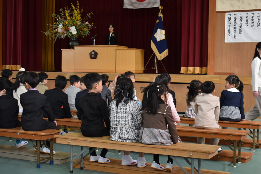 1年生が入学してきました。カーペットの上をかっこよく歩き、呼名にしっかりと返事をしました。担任の先生のお話も一生懸命に聞いていて、張り切っている様子が伝わってきました。1年間わくわくすることをたくさん見つけていきましょう!優しいお兄さん、お姉さんがたくさんいるのが成仁小の自慢です。どうぞ明日から安心して登校してね。