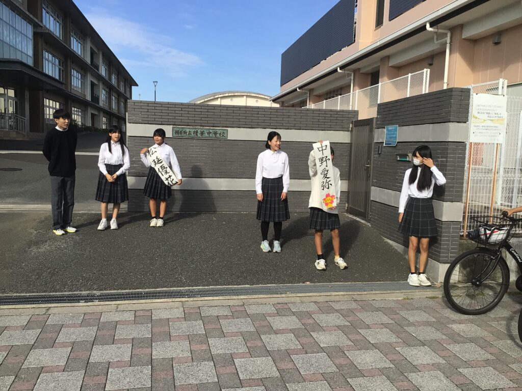 朝の登校時に候補者と応援生徒が選挙運動に取り組んでいます。素晴らしい公約をかかげて精華中学校をより良くするために頑張っています。全校生徒や地域のために頑張ってくれている立候補者に感謝の気持ちでいっぱいです。