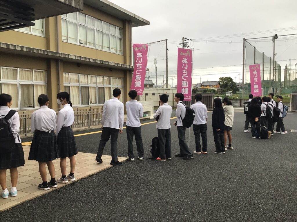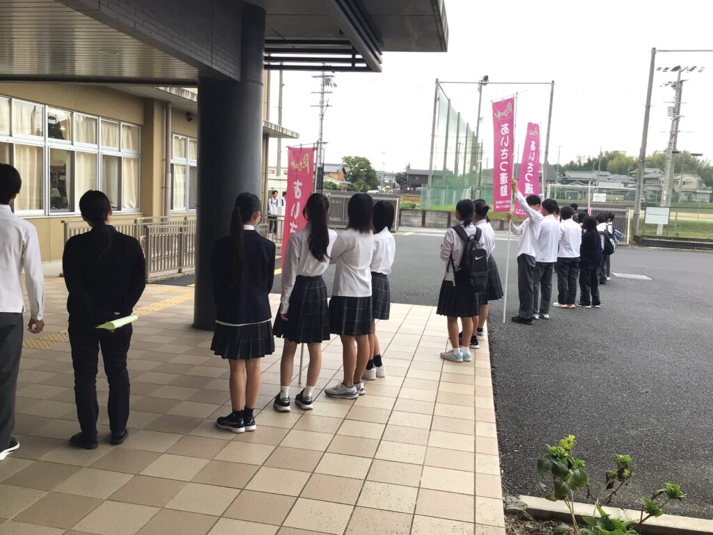 本日10月6日から10月16日までの間、コミュニティ部委員による「あいさつ運動」の取組を実施しています。体育大会の成功に向け頑張ってくています。