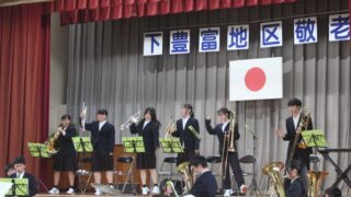 本日の成和中 10.26 地域とともに 修斉地区 敬老会に参加 10.26(日)修斉地区の敬老会が行われました。本校の吹奏楽部がステージ発表をし、生活科学部は、受付でメッセージカードを配布したり、抽選会をサポートしたりとボランティアとして活動してくれました。学校の外に出て、地域のために笑顔で積極的に活... 2025.10.27 本日の成和中