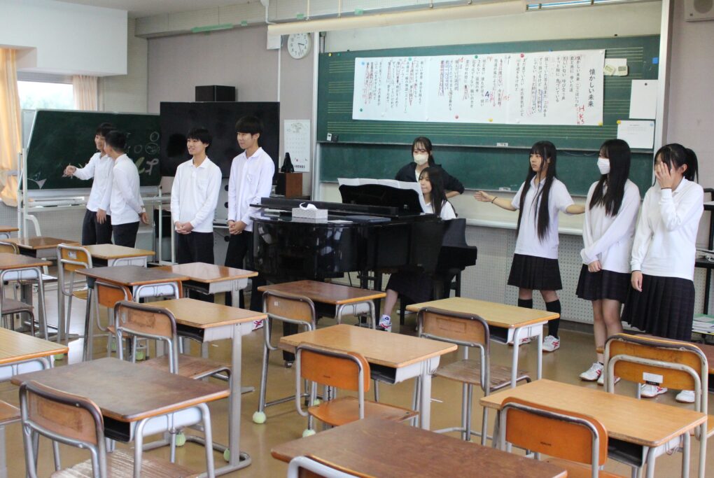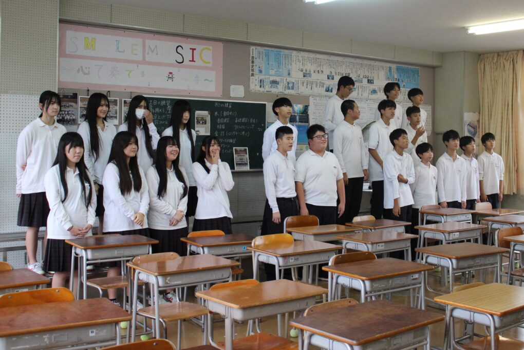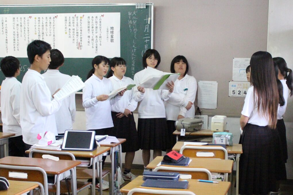本日より文化祭(10/31)に向けて、学級合唱の練習がスタートしました。本日より毎日6時間目終了後に合唱練習が入ります。どのクラスもパートリーダーを中心に素晴らしい学級合唱ができるように日々の練習に取り組みましょう。今までのクラスの団結を発揮し、聞いている人達に感動を与える合唱にしてほしく思います。