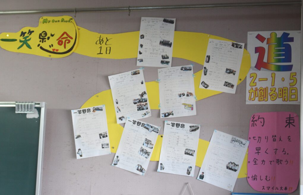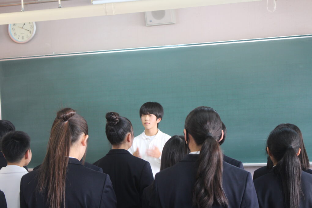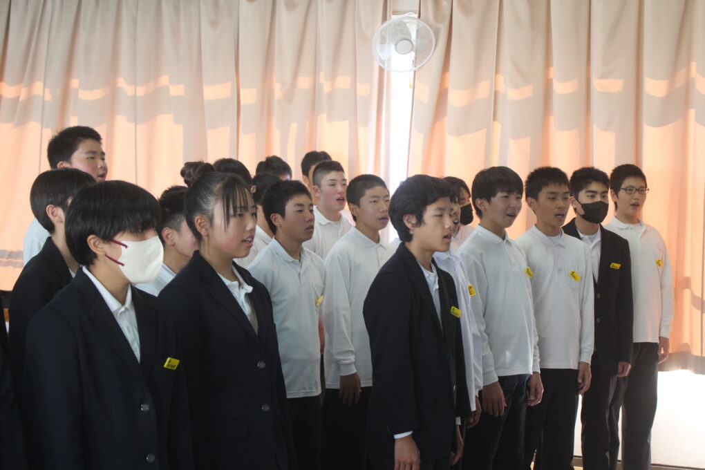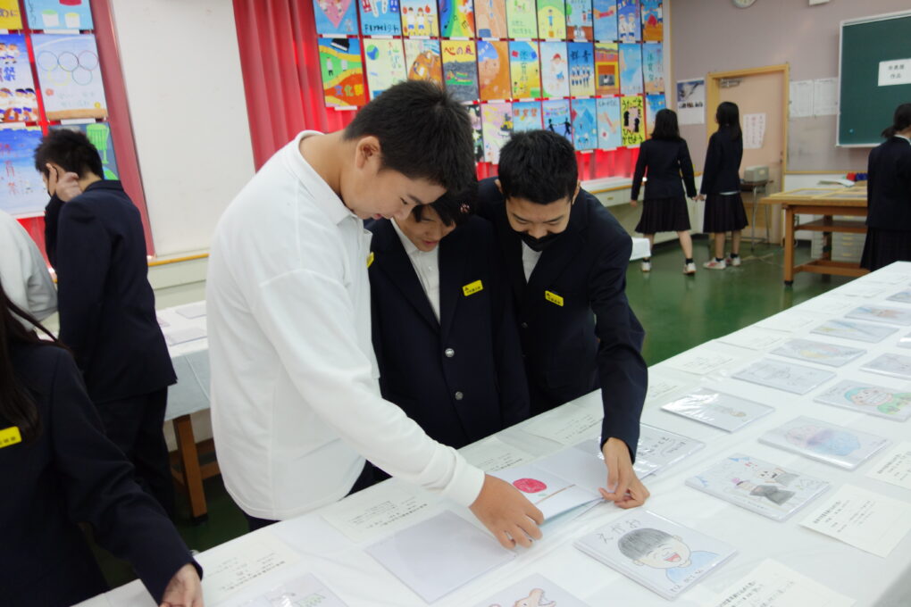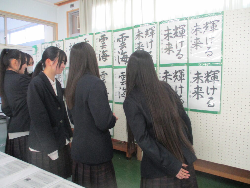 いよいよ第73回成和中学校文化祭の前日となりました。いままでたくさんの時間をかけ学級合唱の練習に取り組んできた成果を明日のステージ発表で出し切ってほしく思います。今まで共に頑張ってきた仲間と共に、心を込めて堂々とした態度で合唱を歌いきりましょう。吹奏楽部の皆さんもたくさんの人の前で緊張もあるかと思いますが、敬老会でもたくさんの地域の人達の前で演奏した自信を胸に楽しく堂々と演奏してほしく思います。本日午前中に学年毎に展示の鑑賞をしました。たくさんの素晴らしい作品を鑑賞することができました。食い入るように作品を見ている人もいました。また、学級合唱も最後の練習となり、どの学級も思いをしっかりと込めて、真剣な表情で歌う姿が印象的でした。いくつか写真で紹介します。 保護者の皆さん、平日のお忙しい中だとは思いますが、明日は子ども達の頑張りを見に来ていただけるとありがたいです。明日は駐車場の誘導が始めの時間しかできませんが、校舎周辺が満車になれば、グラウンドを開放していますので、そちらの方に駐車をお願いします。駐車場内で接触事故等が起こらないように十分に安全運転でお世話になりますよう、お願いします。