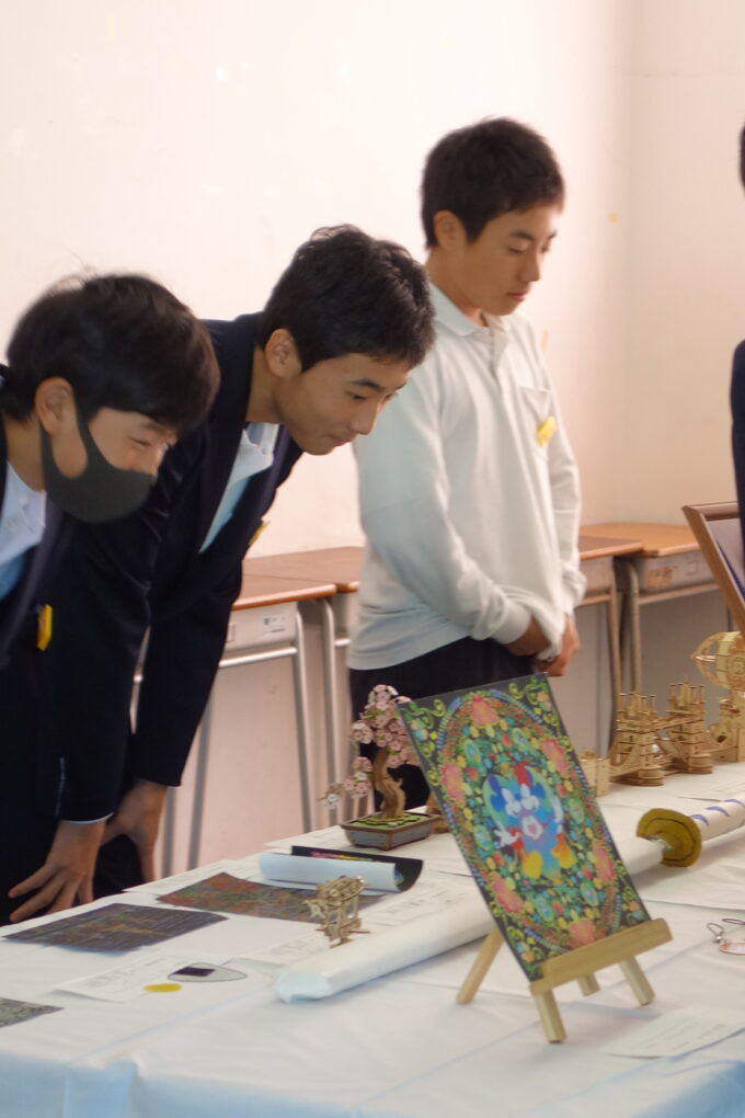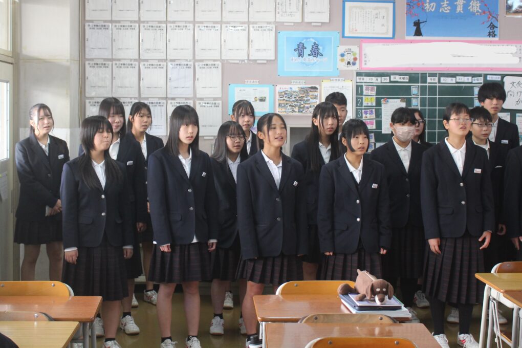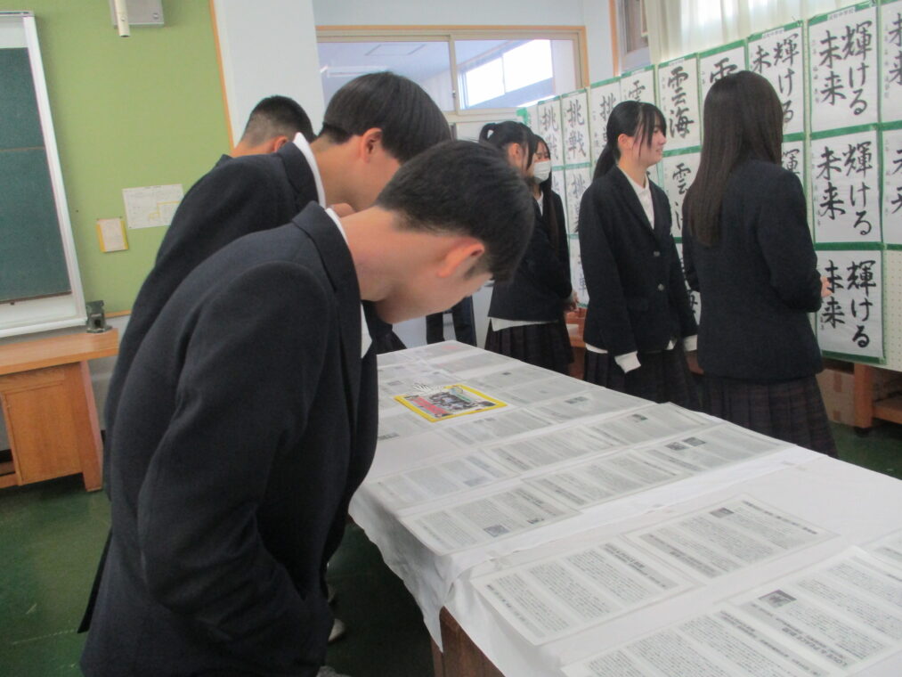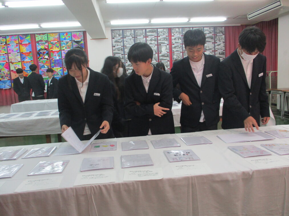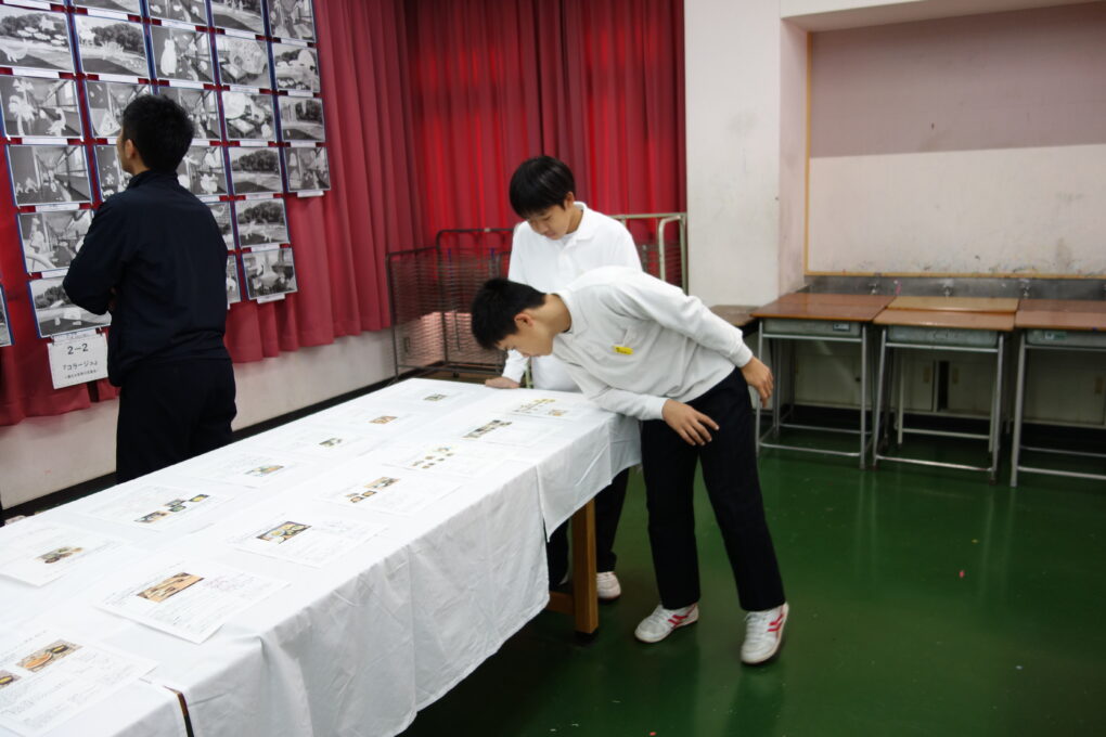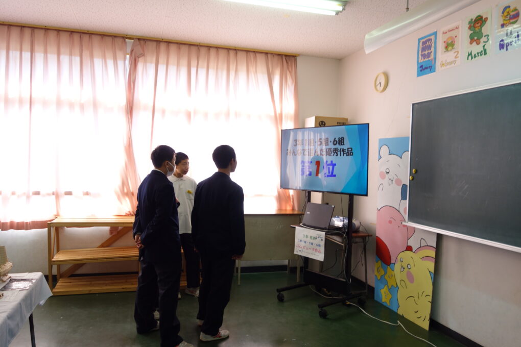 いよいよ第73回成和中学校文化祭の前日となりました。いままでたくさんの時間をかけ学級合唱の練習に取り組んできた成果を明日のステージ発表で出し切ってほしく思います。今まで共に頑張ってきた仲間と共に、心を込めて堂々とした態度で合唱を歌いきりましょう。吹奏楽部の皆さんもたくさんの人の前で緊張もあるかと思いますが、敬老会でもたくさんの地域の人達の前で演奏した自信を胸に楽しく堂々と演奏してほしく思います。本日午前中に学年毎に展示の鑑賞をしました。たくさんの素晴らしい作品を鑑賞することができました。食い入るように作品を見ている人もいました。また、学級合唱も最後の練習となり、どの学級も思いをしっかりと込めて、真剣な表情で歌う姿が印象的でした。いくつか写真で紹介します。 保護者の皆さん、平日のお忙しい中だとは思いますが、明日は子ども達の頑張りを見に来ていただけるとありがたいです。明日は駐車場の誘導が始めの時間しかできませんが、校舎周辺が満車になれば、グラウンドを開放していますので、そちらの方に駐車をお願いします。駐車場内で接触事故等が起こらないように十分に安全運転でお世話になりますよう、お願いします。