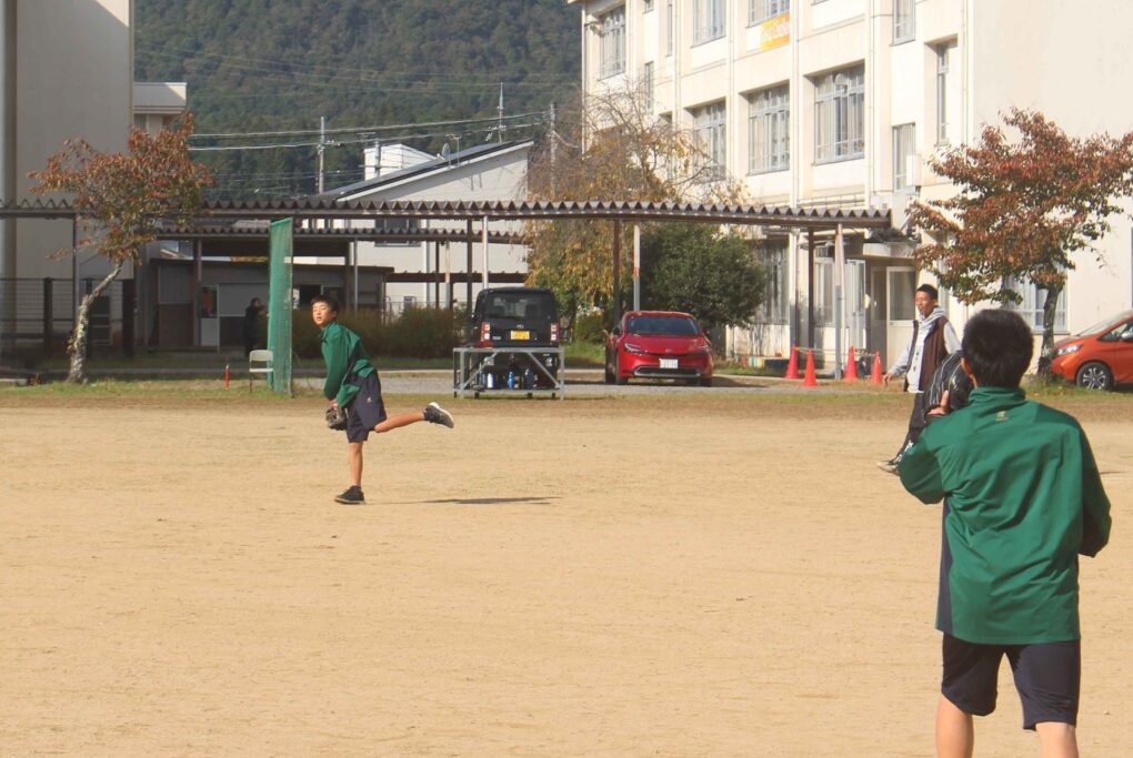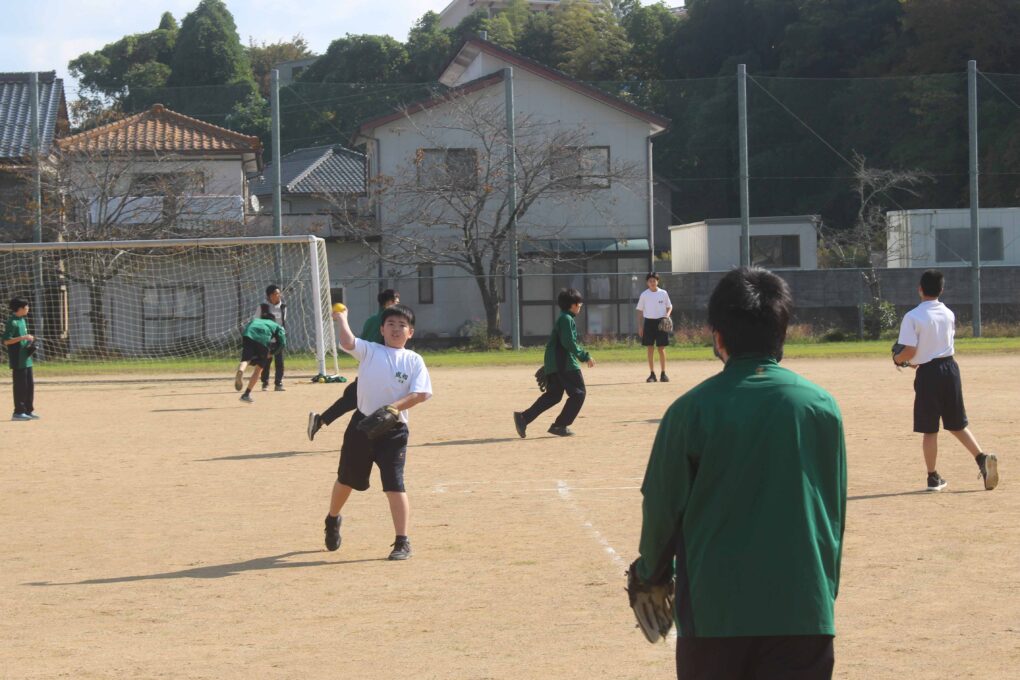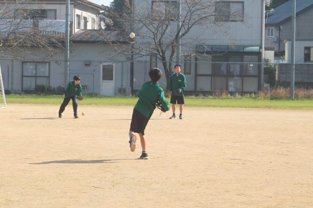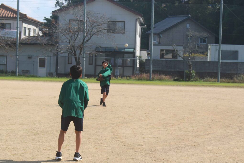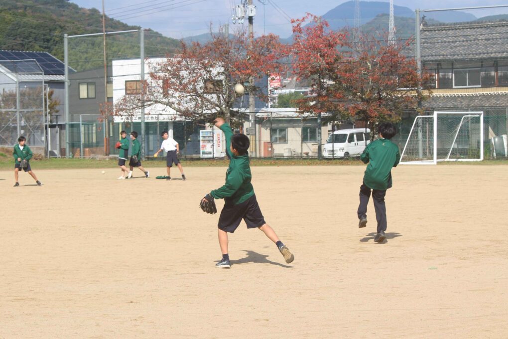 本日2時間目の1年生男子体育の様子です。キャッチボールを行っていました。普通のキャッチボールからフライ、ゴロ、最後はレベルを上げて、3人で1列になり捕球してから素早くボールを投げる、クイックスローのキャッチボールと様々なキャッチボールを元気良く、楽しく行っていました。少年野球や野球部など経験者もいますが、未経験の生徒も多くいる中、相手の事を考えて、捕球しやすい所に、捕球しやすいスピードのボールを投げたりすることができていて感心しました。文化祭を終えて、仲間意識や相手意識が持てるようになっているのかなぁと感じる1年生男子体育の様子でした。
