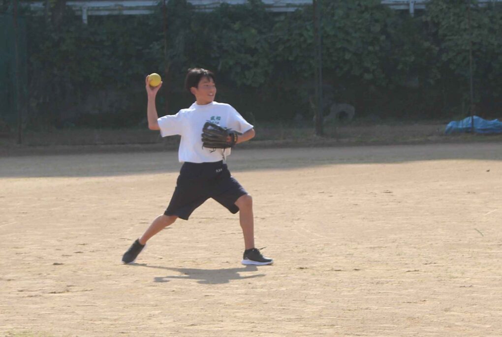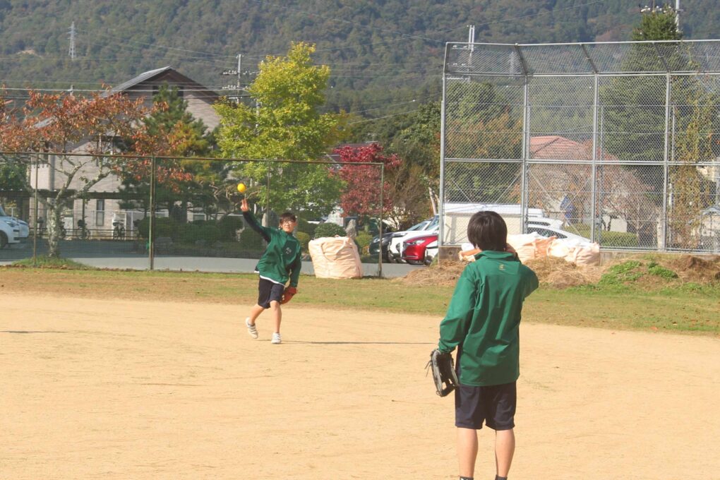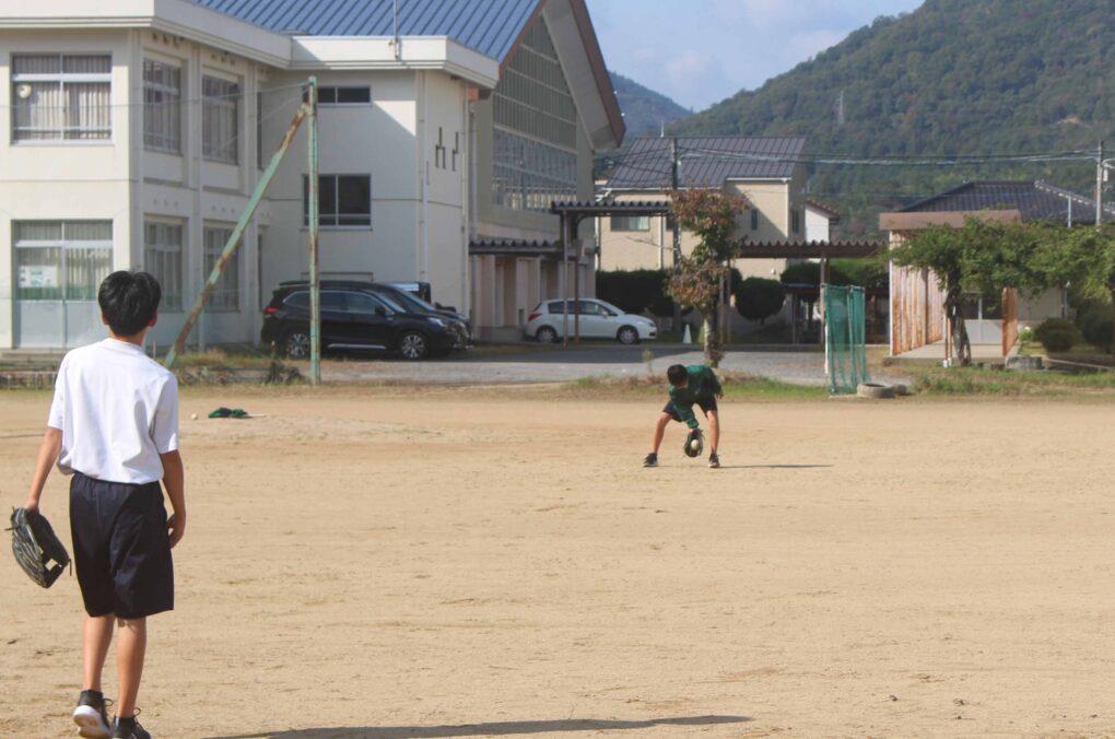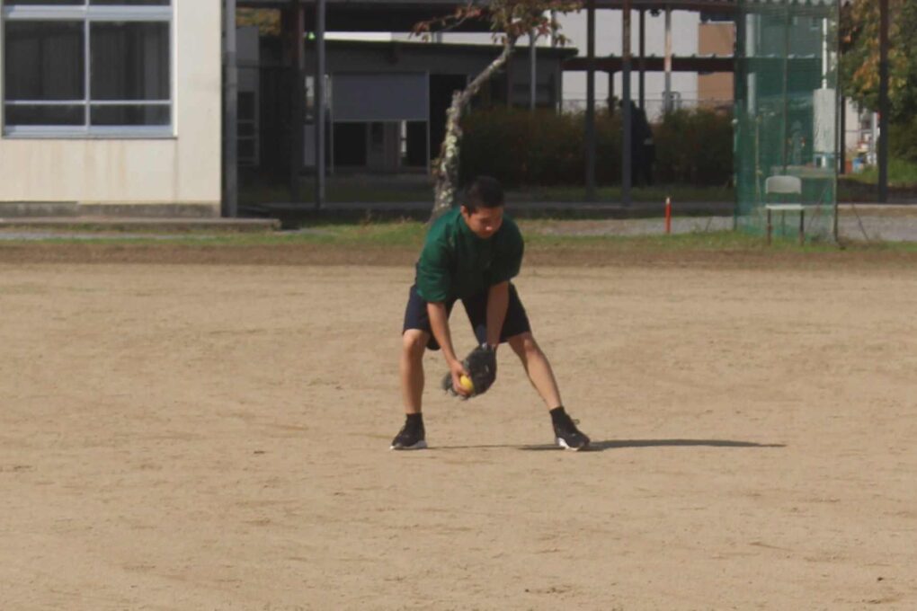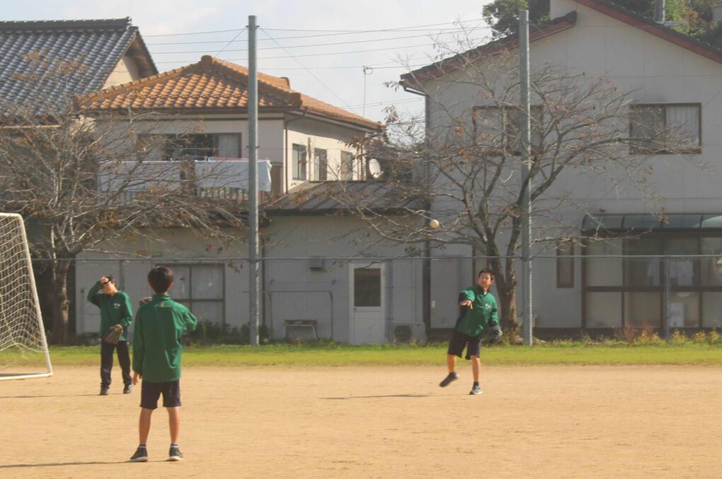 本日2時間目の1年生男子体育の様子です。キャッチボールを行っていました。普通のキャッチボールからフライ、ゴロ、最後はレベルを上げて、3人で1列になり捕球してから素早くボールを投げる、クイックスローのキャッチボールと様々なキャッチボールを元気良く、楽しく行っていました。少年野球や野球部など経験者もいますが、未経験の生徒も多くいる中、相手の事を考えて、捕球しやすい所に、捕球しやすいスピードのボールを投げたりすることができていて感心しました。文化祭を終えて、仲間意識や相手意識が持てるようになっているのかなぁと感じる1年生男子体育の様子でした。