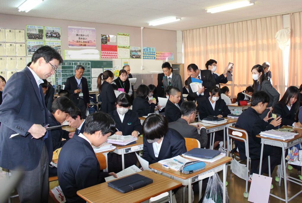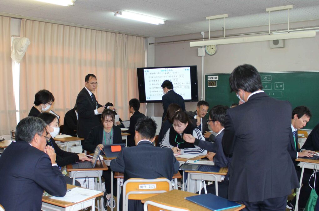 5時間目には、1年2組の英語の授業を参観し、先生達で「より良い授業づくり」を目指して、いろいろと協議をしました。たくさんの先生達が1年2組の英語の授業を見に来ましたが、生徒達はいつも通り、しっかりと学習に取り組んでいました。ペア活動も全員が取り組めていました。