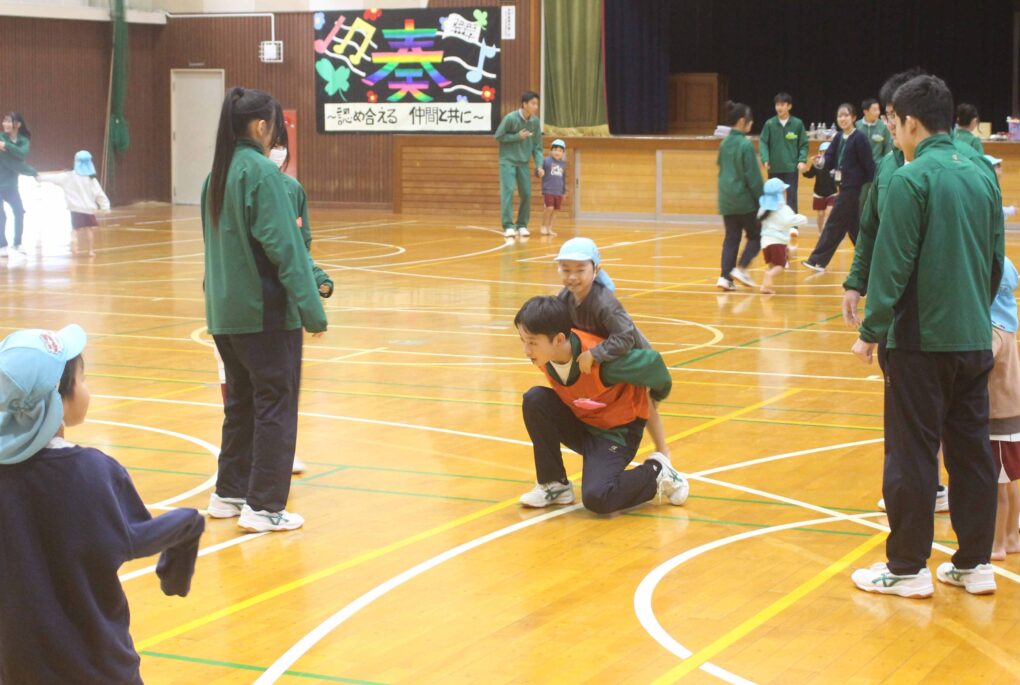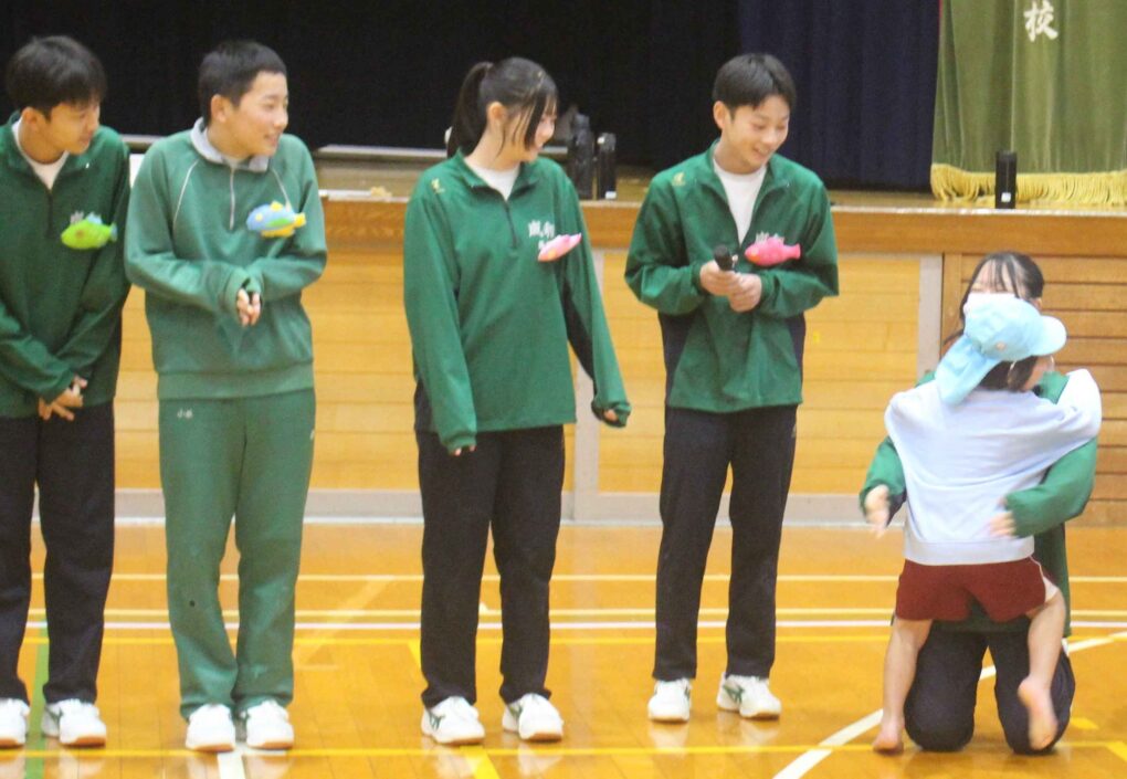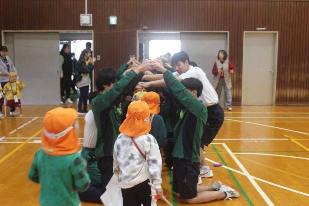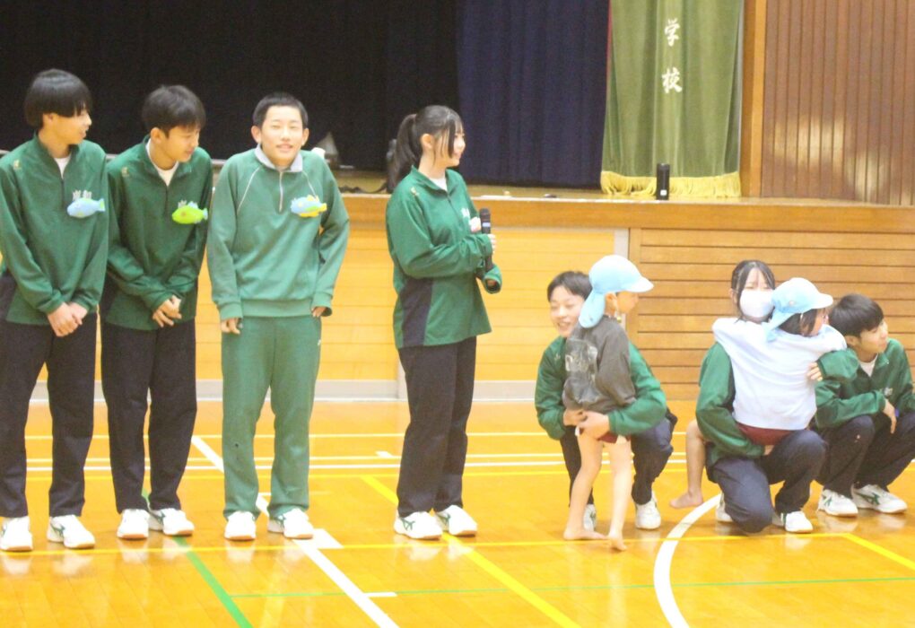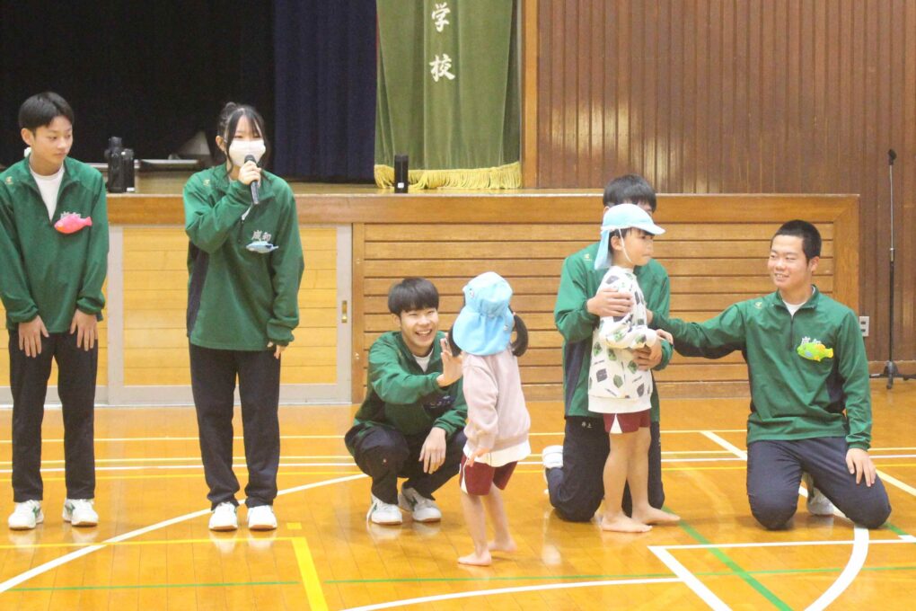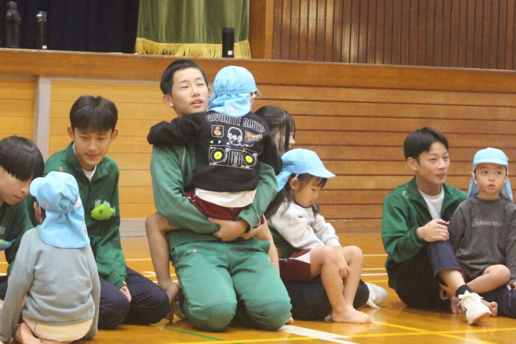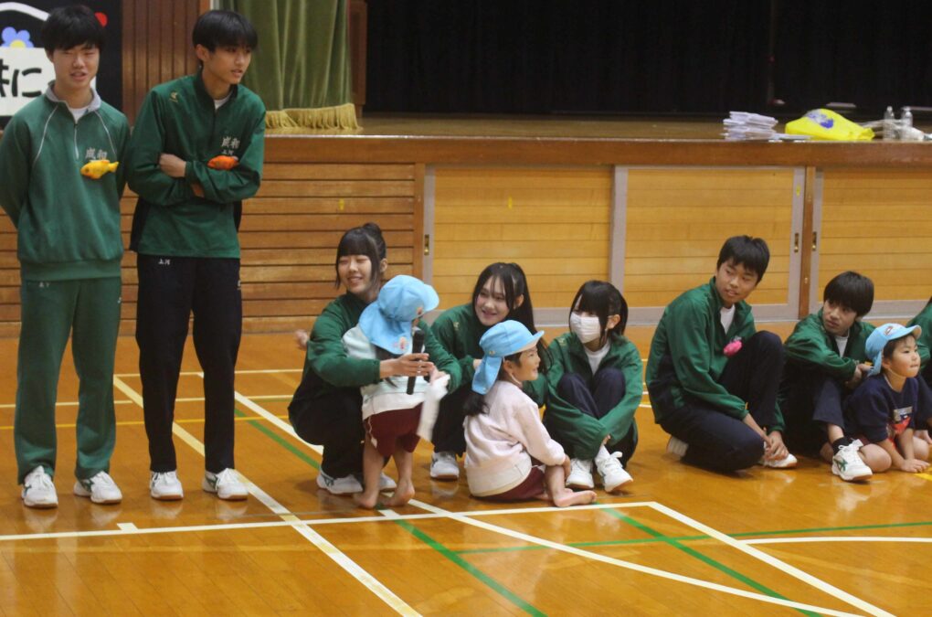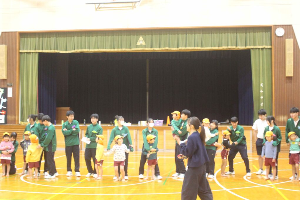 本日2.3時間目に3年生の家庭科の授業で一成保育園の4歳児.5歳児とのふれあい保育の授業を行いました。家庭科の授業で準備をしてきた手作りの絵本なども使って、園児に優しく対応する3年生達、とても優しい穏やかな表情で楽しい時間を過ごしました。最初は恥ずかしくて保育園の先生から離れられなかった園児も途中からはすっかり中学生のお兄さん、お姉さんと一緒に楽しんでいました。最後は「楽しかった~」とたくさんの園児達が声にしてくれていました。保育園の先生達からも「とても優しいお兄さん、お姉さんばかりですね。感心します。」と褒めていただきました。見ている方も心が温まる3年生家庭科のふれあい保育の授業でした。