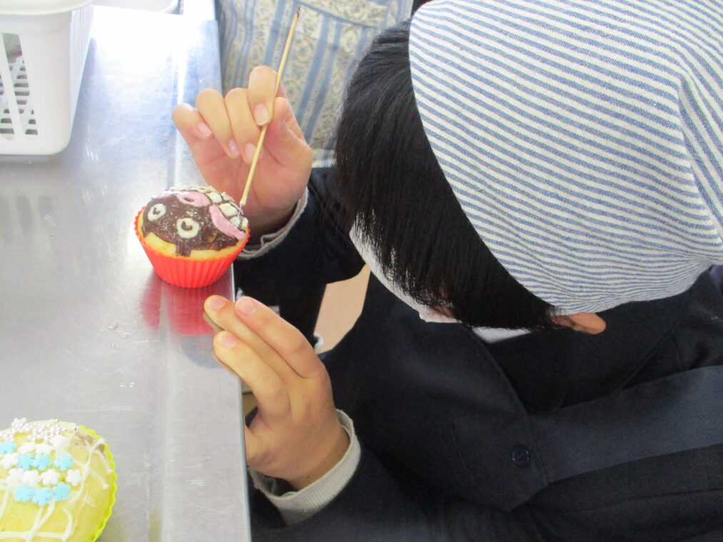 本日、3年生が調理実習でみたらし団子と蒸しパンを作りました。幼児の子ども達が楽しめるようなものということで、蒸しパンにデコレーションをして可愛らしいスイーツが完成していました。細かな作業で時間もかかっていましたが、素晴らしい仕上がりとなりました。