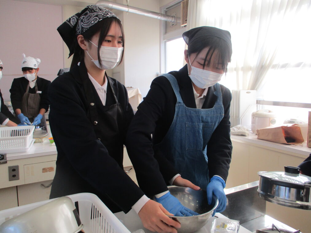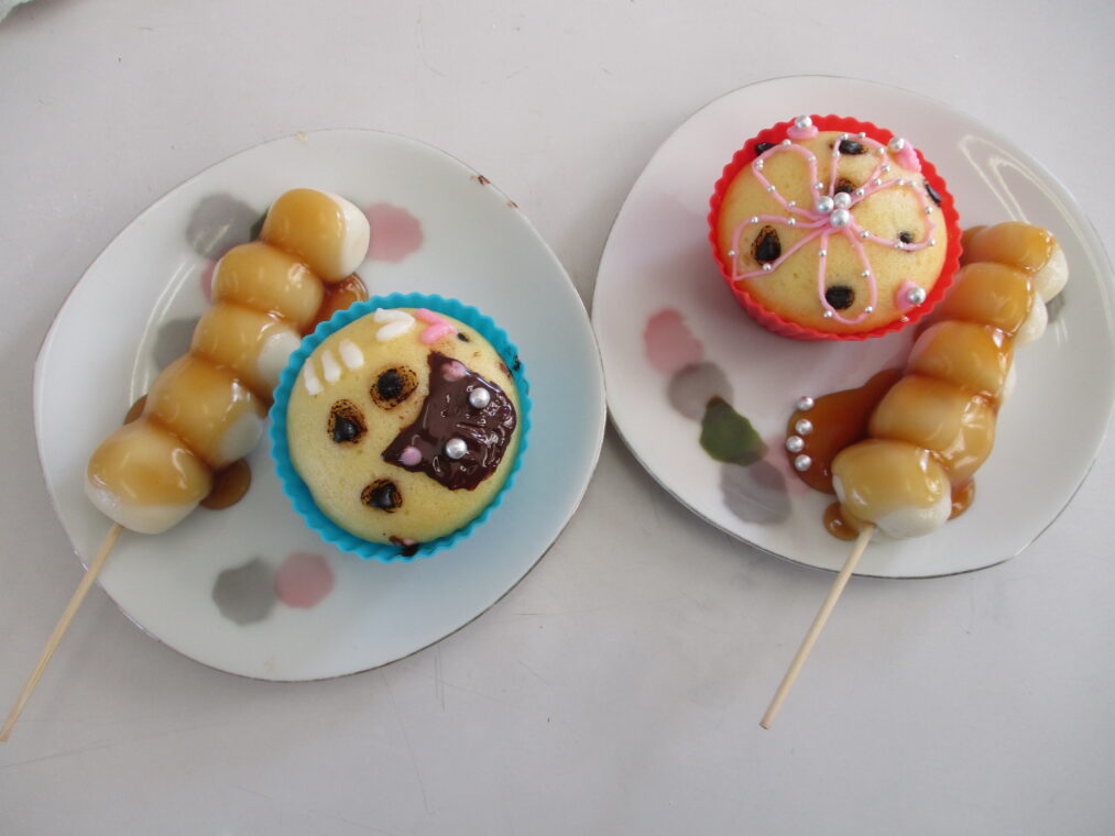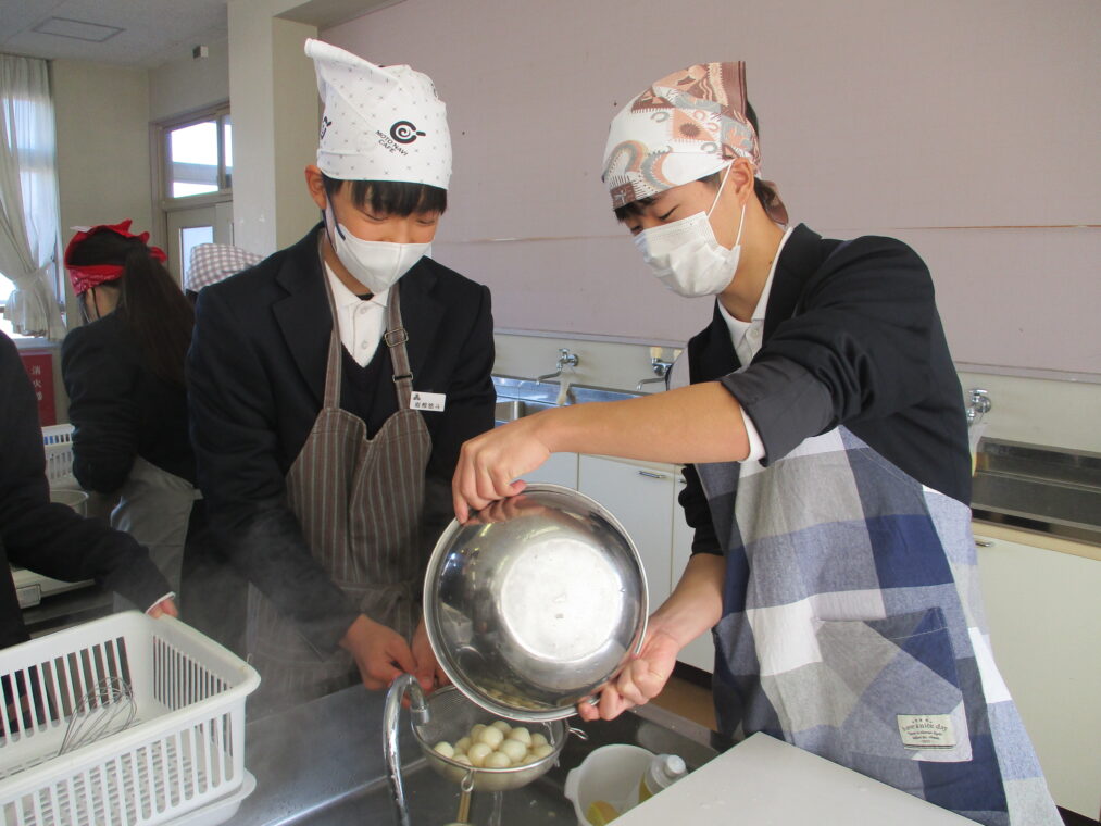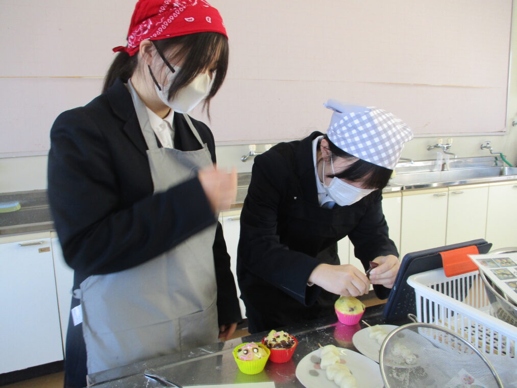 本日先週から始まった2学期末の調理実習の最後の学級である3年2組がみたらし団子と蒸しパンの調理実習を行いました。2学期もいよいよ明日が最終日となる中の調理実習では、楽しく穏やかな時間が流れていました。仕上がりも素晴らしく、とても可愛らしいスイーツがたくさんできあがりました。なかなかの腕前です。感心します。
