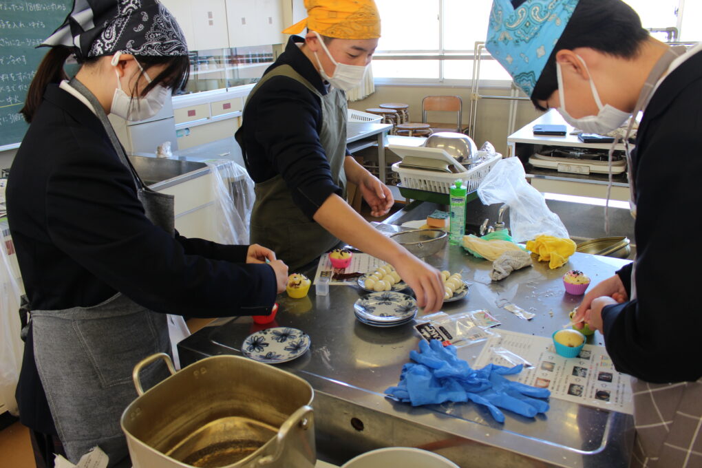 本日の成和中本日先週から始まった2学期末の調理実習の最後の学級である3年2組がみたらし団子と蒸しパンの調理実習を行いました。2学期もいよいよ明日が最終日となる中の調理実習では、楽しく穏やかな時間が流れていました。仕上がりも素晴らしく、とても可愛らしいスイーツがたくさんできあがりました。なかなかの腕前です。感心します。