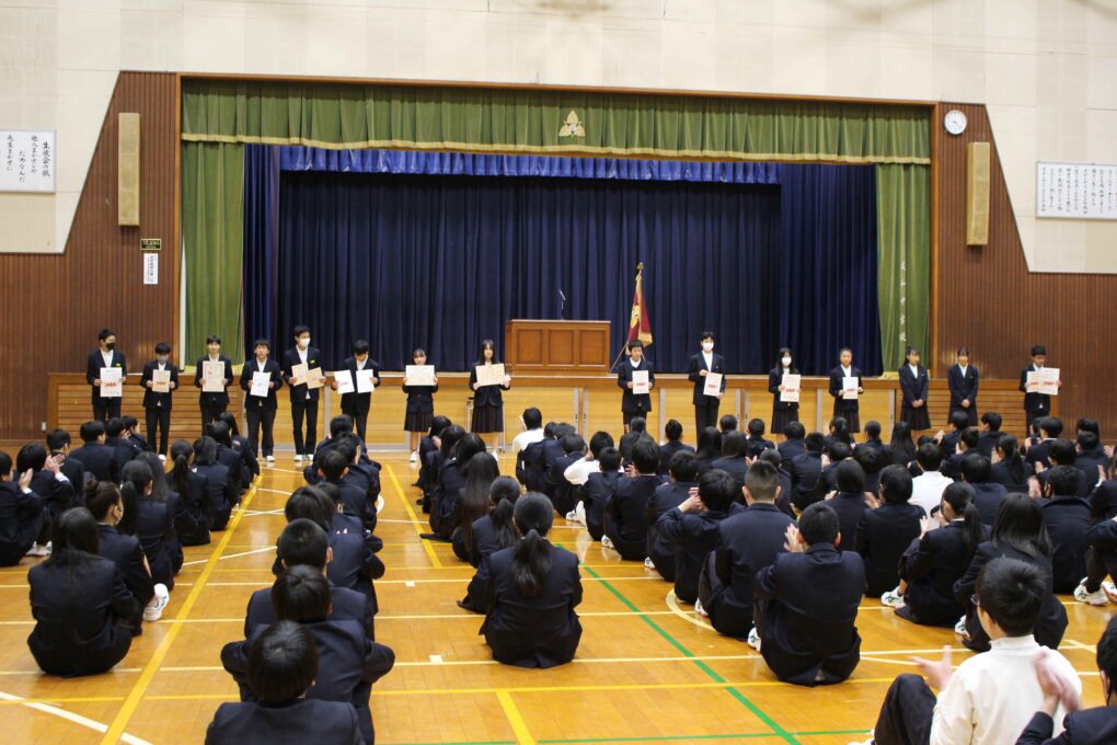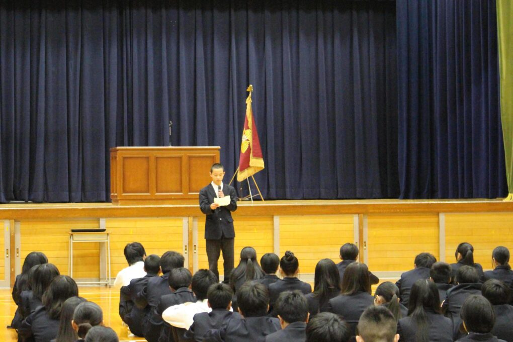 本日78日間という1年で最も長い2学期が無事終了しました。普段の学校生活の中で身につけた仲間を大切にする姿勢や仲間と協力する力、最後まで粘り強く取り組む力などをしっかりと発揮し、大きな行事である体育祭や文化祭も見事に成功させてくれました。生き生きと活動する生徒の皆さんの姿がたくさん見られた良い学期になりました。3学期は1年で最も短い学期です。3年生については登校日数44日という短さです。それぞれの学年で4月以降の次のステージを見据えて、目標を持って学校生活を送りたいものです。