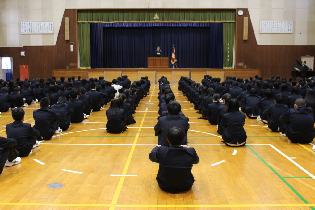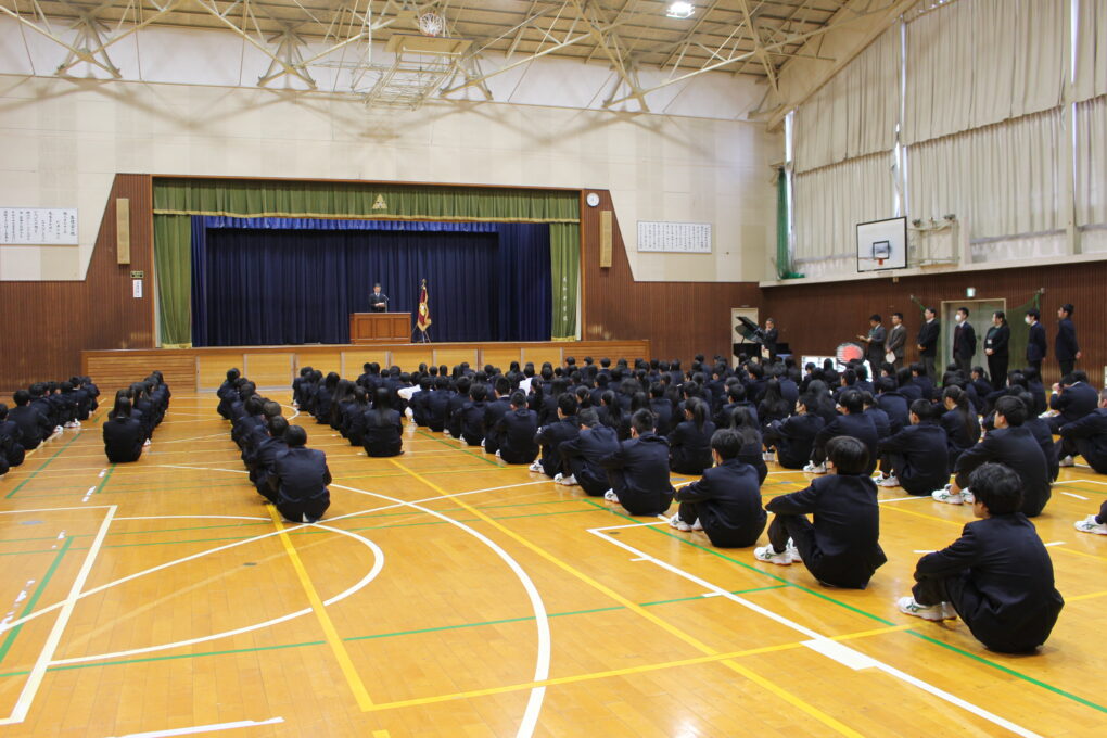 本日より令和7年度3学期がスタートしました。今年もよろしくお願いします。大変寒い1日でしたが、ストーブで体育館を暖め、始業式を行いました。成和中学校に元気な生徒達の笑顔が戻ってきました。大きな事故も無く本日生徒の皆さんと再会できたことを嬉しく思います。明日からは給食も再開され、教科の学習もスタートします。3学期は大変短い学期で、3年生は本日を入れて44日、1.2年生は50日の登校日となります。4月からの新しい学年や新しい高校等での生活をイメージし、新しいステージで活躍するための力をしっかりとつけてほしく思います。短い3学期ですが、目標を持ち1日1日を充実させてほしく思います。