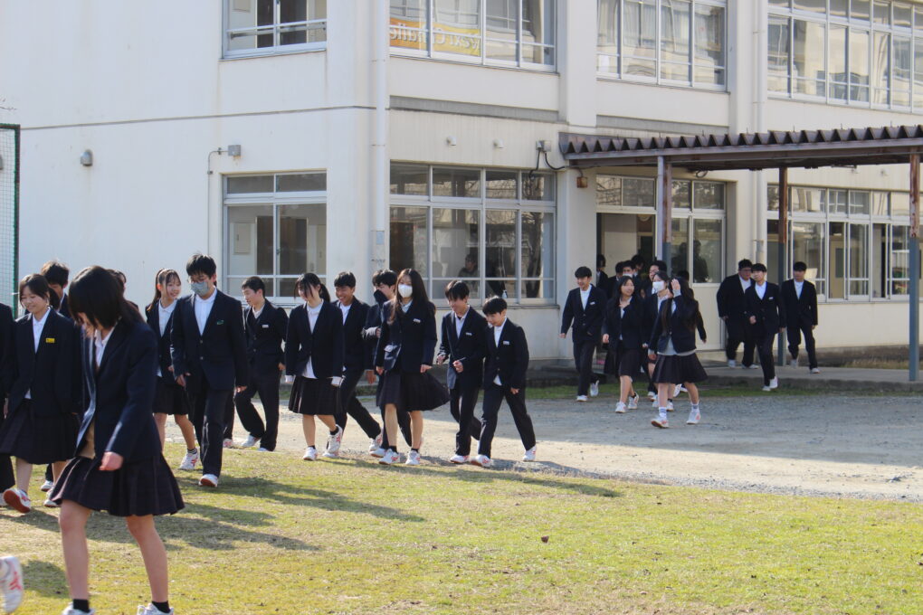 本日、昼休みの時間に地震発生を想定した避難訓練を行いました。前回(9月)と同様に予告をせずに実施をしました。色々な場所で放送の指示に従って行動し、スムーズに避難することができました。本日、話をしましたが、地震はいつどこでどのような規模で発生するか分かりません。だからこそ、普段から「今、地震が発生したら・・」を想定し、どう行動するかシミュレーションすることが大切になります。地震発生でパニックになり行動する時に普段からそのようなイメージを作れているか、全くイメージができていないかでは、大きく対応が変わってくると思います。ほとんどイメージ通りにならないと思いますが、そのような想定外も想定しておいて、臨機応変に対応できるようにしてほしく思います。