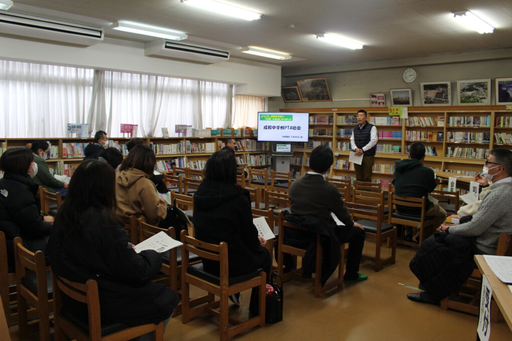 昨夜からの大雪予報のため開催が危ぶまれましたが、予定通り5時間目授業参観、引き続いてのPTA年度末総会が実施できました。平日の開催でしたが、多くの保護者の方に来校いただき、普段の授業の様子を参観いただきました。図書室で行ったPTA総会では、令和7年度事業報告、会計中間報告、令和8年度本部役員についての3つの議案が承認されました。今年度は、子ども達の熱中症予防のために冷水機を2台設置することができました。本部役員さんをはじめ、全PTA会員の方々のご協力に感謝します。令和7年度本部役員のみなさま本当にお疲れ様でした。