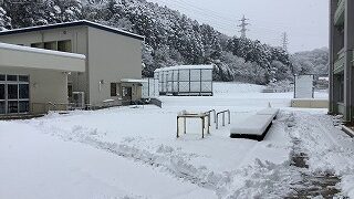 学校も雪景色に染まっています。安全に気を付けてお過ごしください。