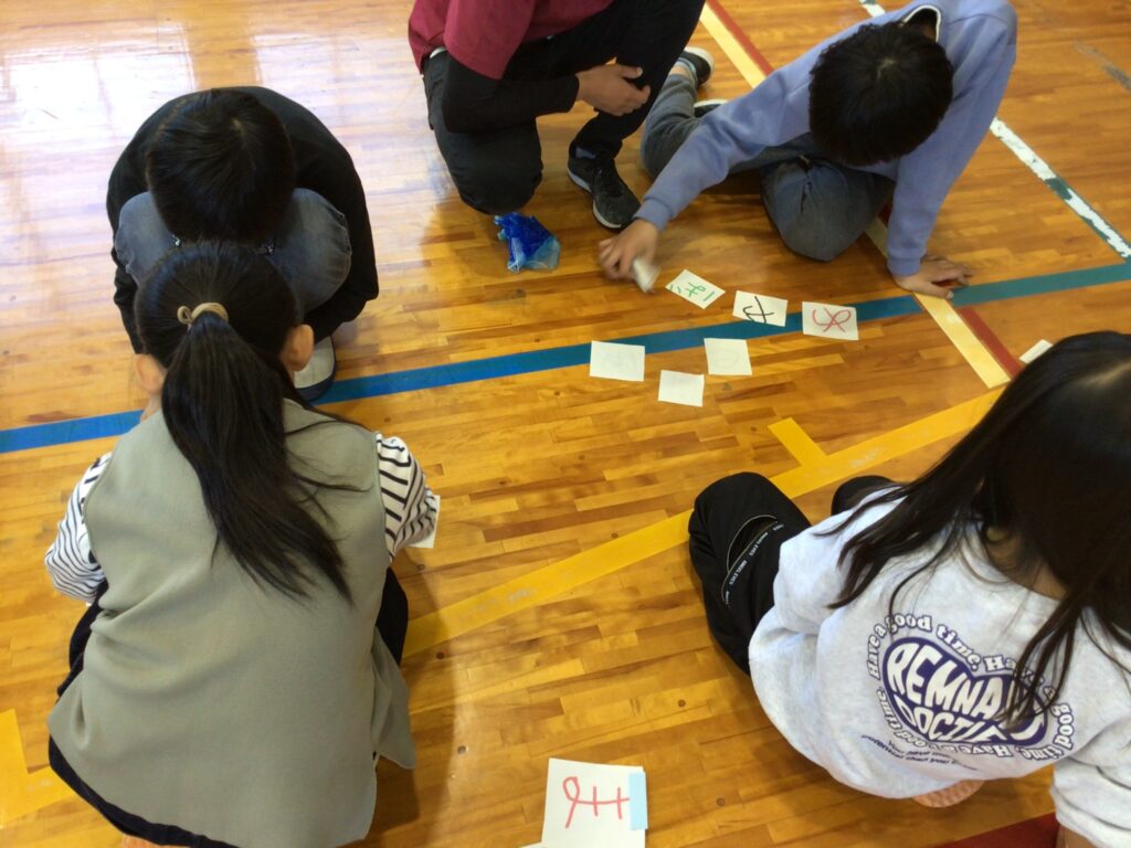 4年生は、みんなが楽しめる遊びにしようと、2学期の初めからみんなで計画・準備をし、文字ならべゲームや風船バレーなどそれぞれの班で考えた遊びを楽しみました。
