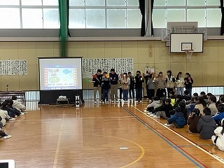 児童集会 本日の遷喬小 Twitter Facebook はてブ Pocket LINE コピー 2026.02.05 委員会からの発表がありましhた。健康委員会では、3つの栄養のことを楽しい歌にのせて伝えるなどしました。また、すくすくありがとう集会に向けて、各学年が頑張っていることの報告や歌練習を行いました。