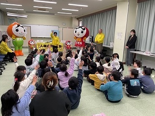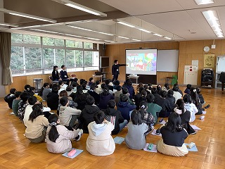 人権推進室の方々から、人権のお話を聞いて学んだり、みんなで「ありがとうの花」を歌ったりして、心が温まる時間を過ごしました。