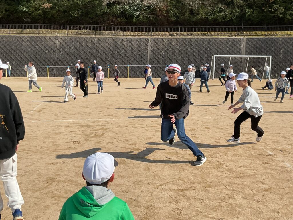 6年生卒業プロジェクト 本日の遷喬小 Twitter Facebook はてブ Pocket LINE コピー 2026.03.16 6年生が卒業プロジェクトとして、全校遊びを計画してくれました。6校時に全校みんなでおにごっこを楽しみました。