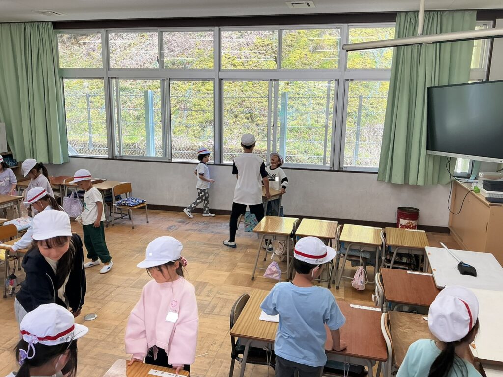 一年生の学級掃除がはじまりまりました。六年生のお兄さん、お姉さんに教わりながら、隅々までピカピカになるように頑張っていました。そうじのポイントもたくさん教えてもらっていました!六年生もどうやって伝えたら分かりやすいか考えながら、関わっていました。学校生活に慣れるまで、六年生と協力して取り組んでいきます!