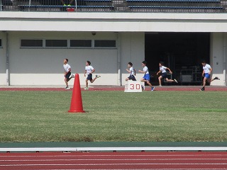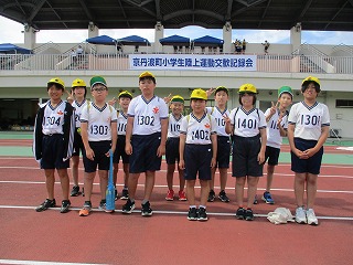 10月2日(木)丹波自然運動公園陸上競技場で、5・6年生の記録会を実施しました。空は晴れ、絶好の記録会日和となりました。100m走は全員が出場しました。2種目目は選択競技です。50mハードル走・ソフトボール投げ・走り幅跳び・走り高跳び・800m走の中から、出場したい種目を選びました。最後の400mリレーは代表者が走りました。どの種目においても、諦めず競技を行ったり、自校や他校の関係なく声援を送ったりする姿が見られました。学校に戻ってきたときは、「ベストを尽くした!」という思いがにじみ出ている表情でした。どの児童も、よく頑張りました。
