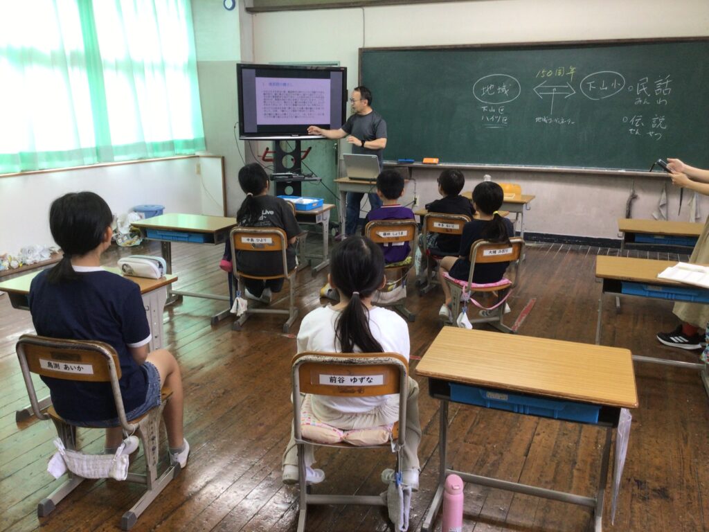 4年生の「総合的な学習の時間」の取り組みとして、地域に伝わる「昔話・民話」を題材に地域探求を行います。今日は、地域コーディネーターの藤田様から、尾長野地域等に伝わる民話をいくつか話していただきました。不思議な話に食い入るように聞いていました。