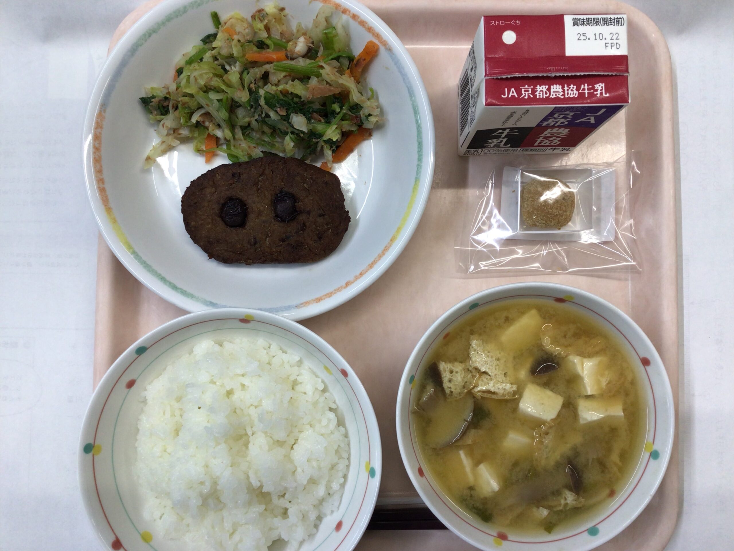 今日の給食:10月10日(金) 今日の給食 Twitter Facebook はてブ Pocket LINE コピー 2025.10.10 京丹波町20周年記念特別献立 🥢ご飯(特別栽培米コシヒカリ) 🥢まめたんバーグ(イシイ食品との共同開発) 🥢ほうれん草とキャベツのおかか和え 🥢はたけしめじと油揚げのみそ汁(須知高校の味噌) 🥢いがぼうず(山下秀製菓の和菓子) Post Views: 10