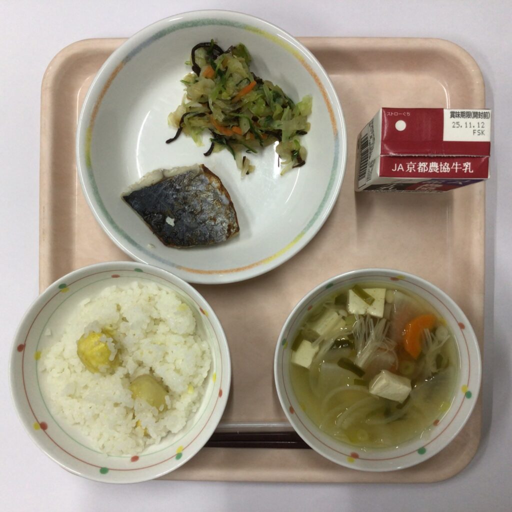 今日の給食:10月31日(金) 今日の給食 Twitter Facebook はてブ Pocket LINE コピー 2025.10.31 🥢栗ごはん 🥢鰆の塩焼き 🥢キャベツの即席漬け 🥢豆腐と大根のすまし汁 ※今日は「京丹波旬献立」でした Post Views: 19