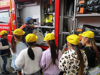 10月29日(水)に3年生が社会科の学習として、消防署を訪問しました。事前に調べ学習を行い、聞きたいことをまとめてから見学に臨みました。隊員の方が素早く出動できるための着替え方や、消防車や救急車のつくりなどを実際に見たり教えていただいたりしました。隊員の素早い行動が、町の安全を守ったり命を救うことにつながったりしていることを感じ取ることができました。この学びを、今後の防災学習に役立てていきたいと思います。