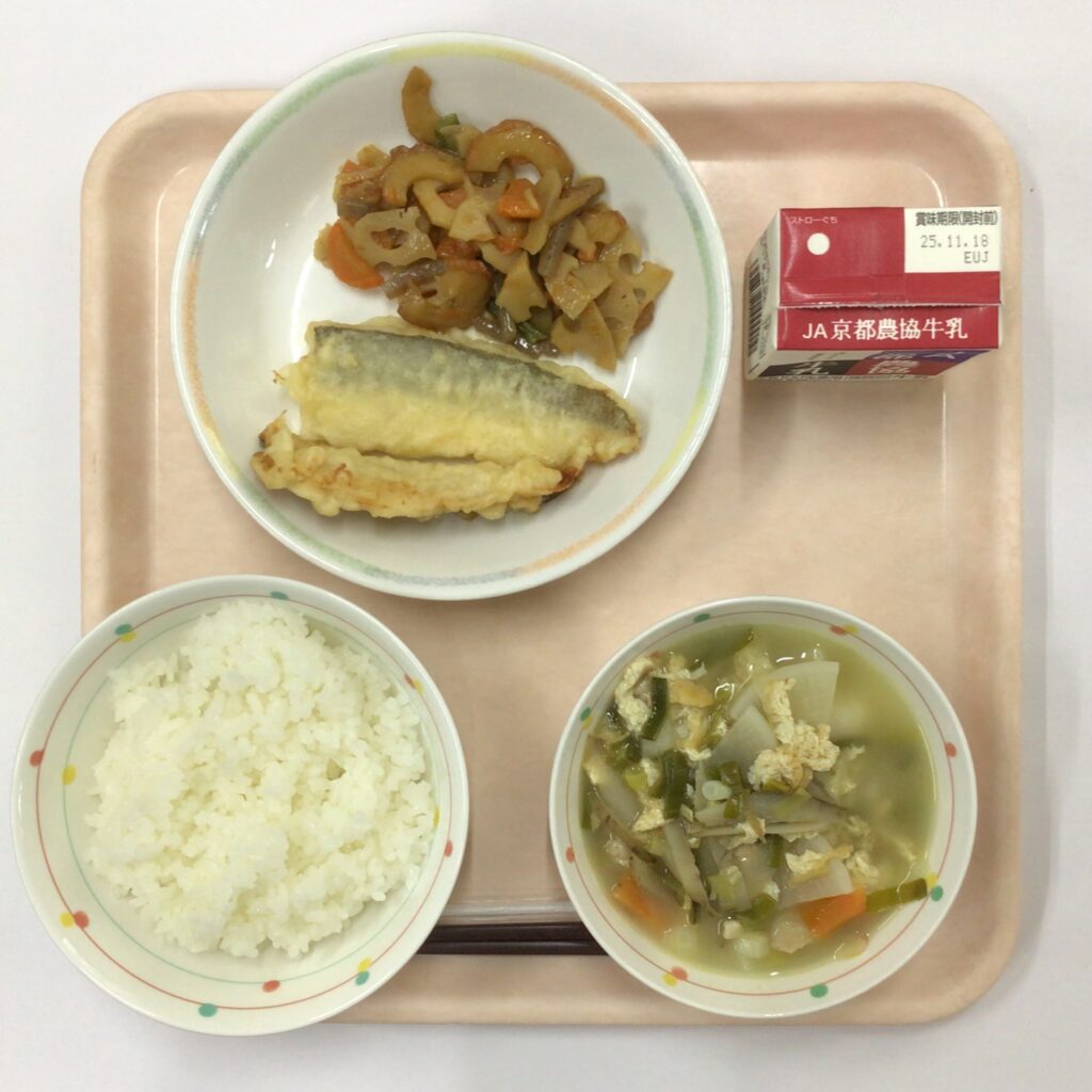 今日の給食:11月6日(木) 今日の給食 Twitter Facebook はてブ Pocket LINE コピー 2025.11.06 🥢カマスの天ぷら 🥢レンコンの甘辛炒め 🥢のっぺい汁 Post Views: 10