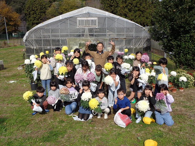 また、全国で1位の実績を持つ須知高校を訪問し、見事な菊を見せていただくとともに、児童一人ひとりに菊の花を一輪ずついただきました。高校生たちの技術の高さを実感する貴重な経験となりました。