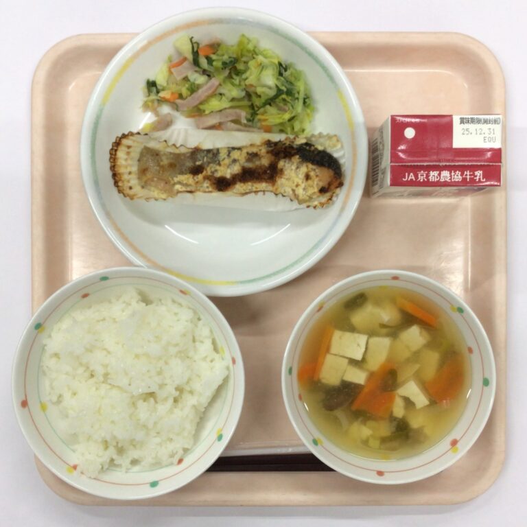 今日の給食:12月19日(金) 今日の給食 Twitter Facebook はてブ Pocket LINE コピー 2025.12.22 🥢鮭のハニーマスタード焼き 🥢キャベツとにんじんのサラダ 🥢豆腐のスープ Post Views: 17