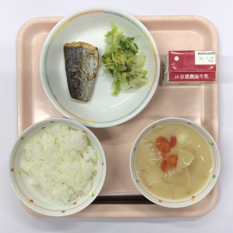 今日の給食:1月8日(木) 今日の給食 Twitter Facebook はてブ Pocket LINE コピー 2026.01.08 🥢さわらの幽庵焼き 🥢京風雑煮 🥢白菜のごまあえ Post Views: 12