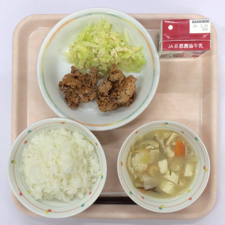 今日の給食:2月10日(火) 今日の給食 Twitter Facebook はてブ Pocket LINE コピー 2026.02.10 🥢鶏肉の山賊揚げ 🥢キャベツのゆず和え 🥢豆腐と油揚げのみそ汁 Post Views: 5