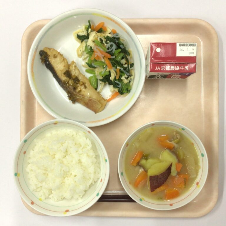 今日の給食:2月25日(水) 今日の給食 Twitter Facebook はてブ Pocket LINE コピー 2026.02.26 🥢鮭のネギ醤油かけ 🥢青菜のかわりおひたし 🥢豚肉とおさつのみそ汁 Post Views: 31